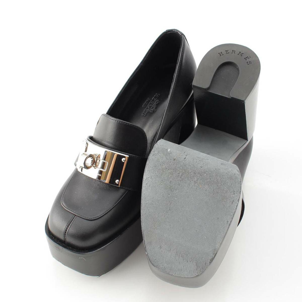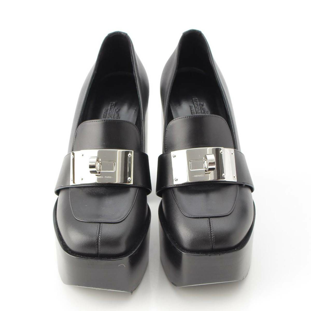 エルメス 23AW ケリーバックル 厚底 ヒール ローファー シューズ ブラック 37