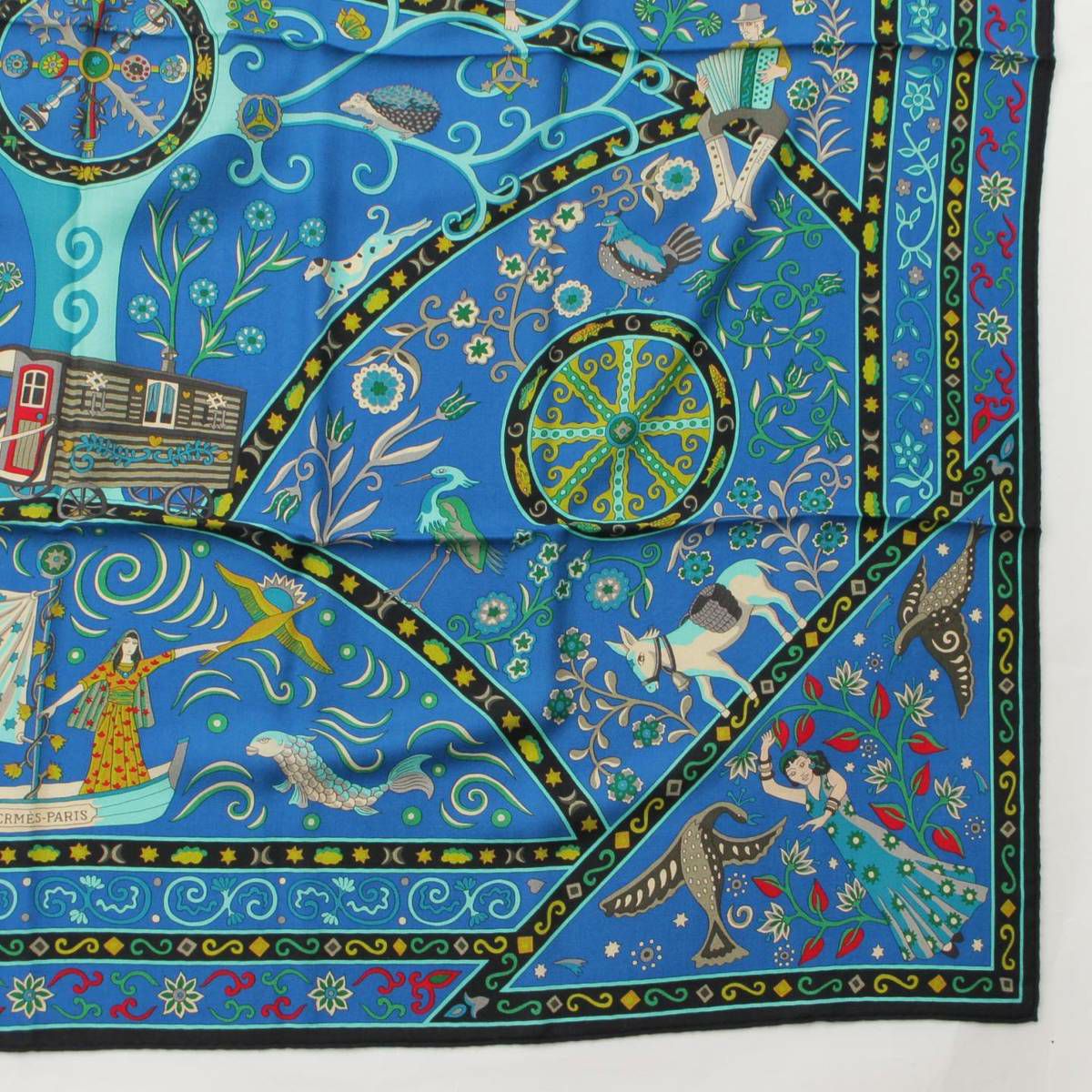エルメス Hermes カレ140 Peuple du Vent 風の民 カシミヤ シルク ショール スカーフ ブルー