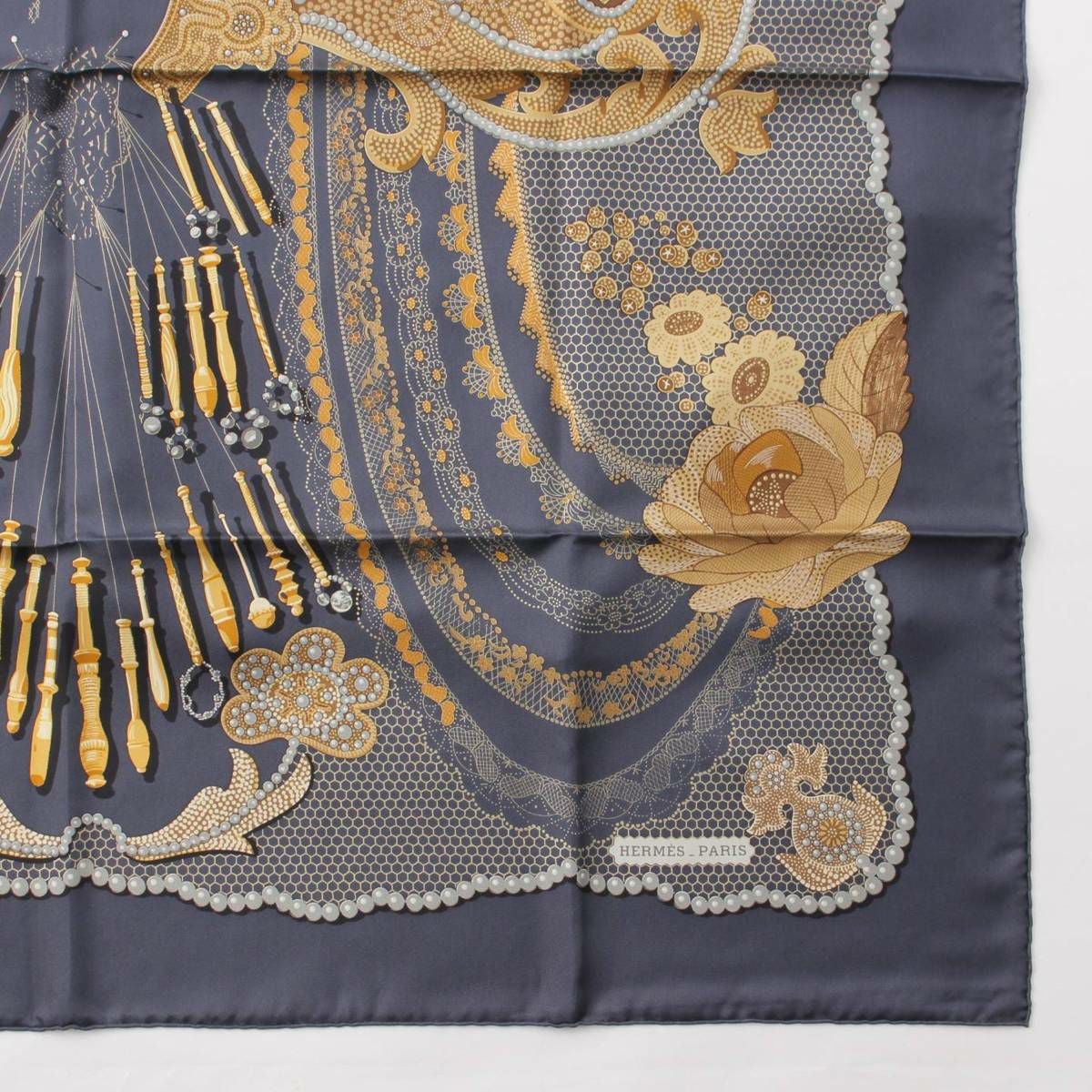 エルメス カレ90 シルクスカーフ Doigts de Fee 妖精の指 ネイビー