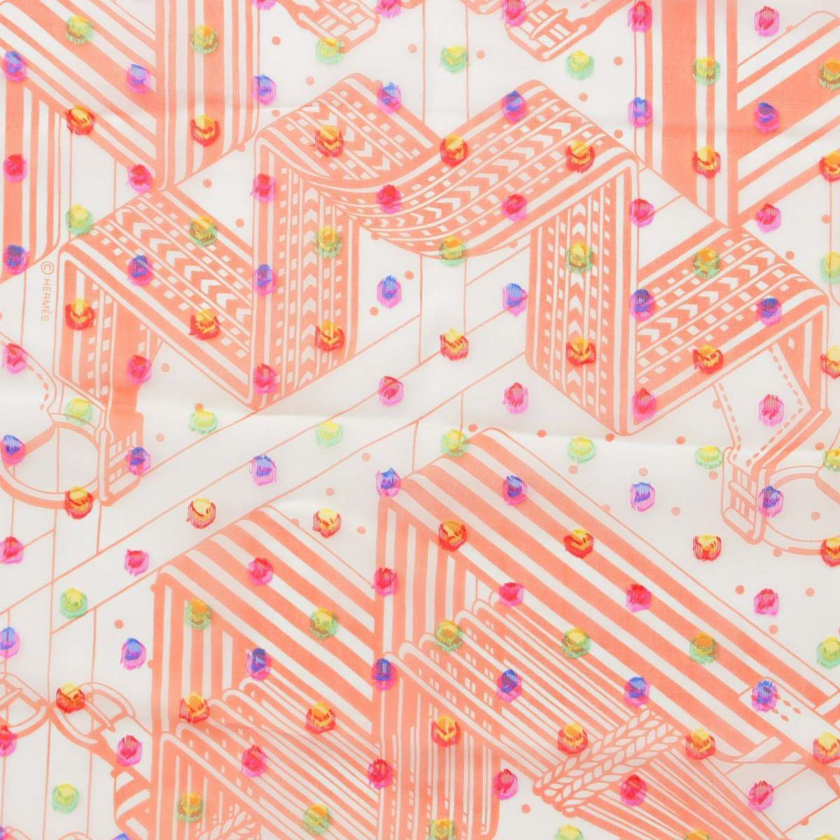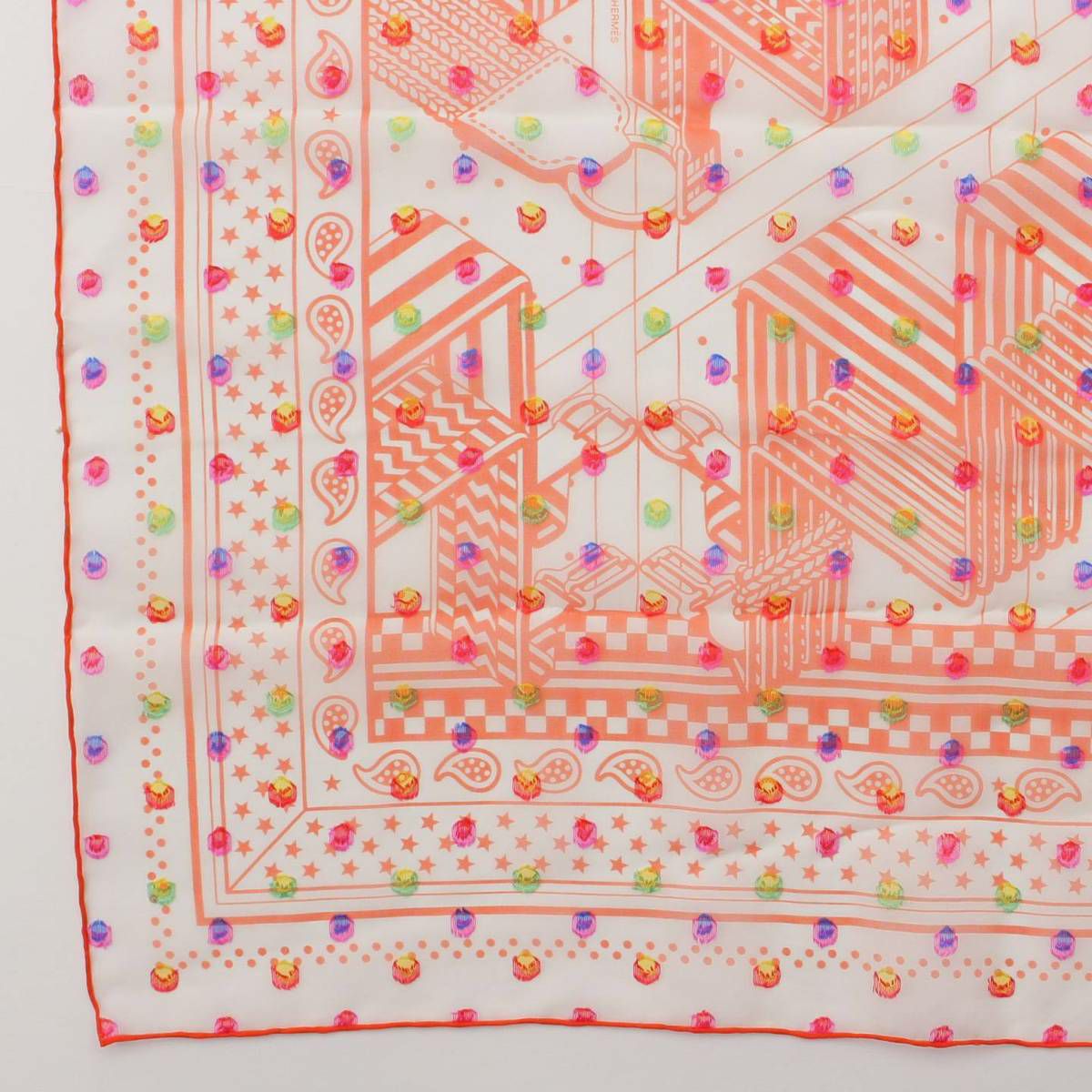 エルメス 23SS カレ60 ジグザグのサングル レインボードット スカーフ H033867S オレンジ