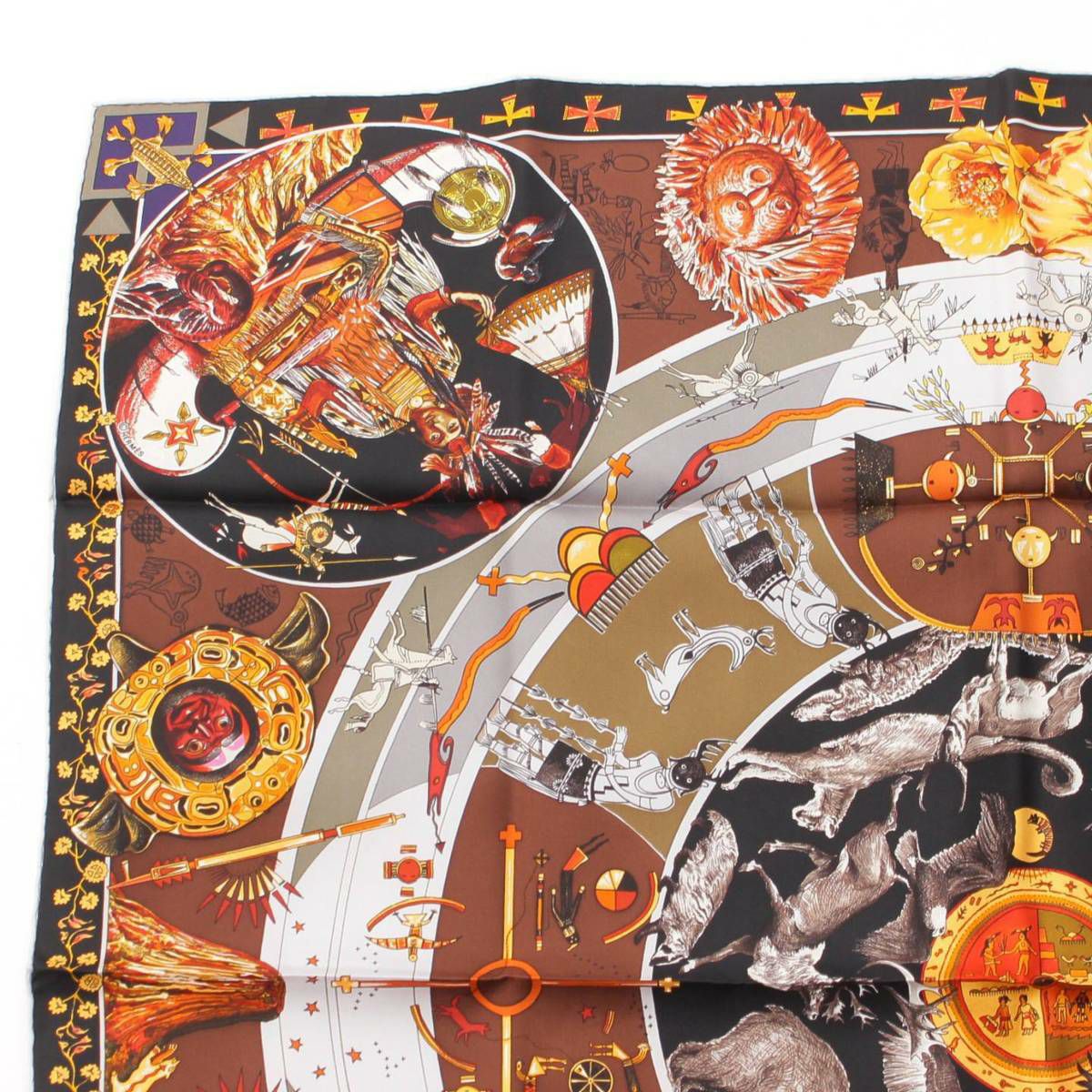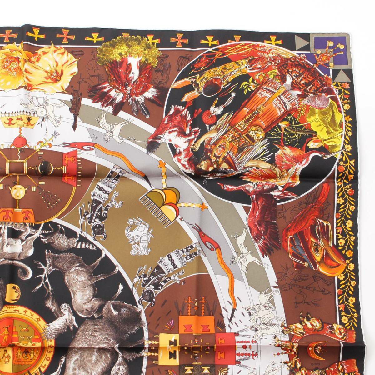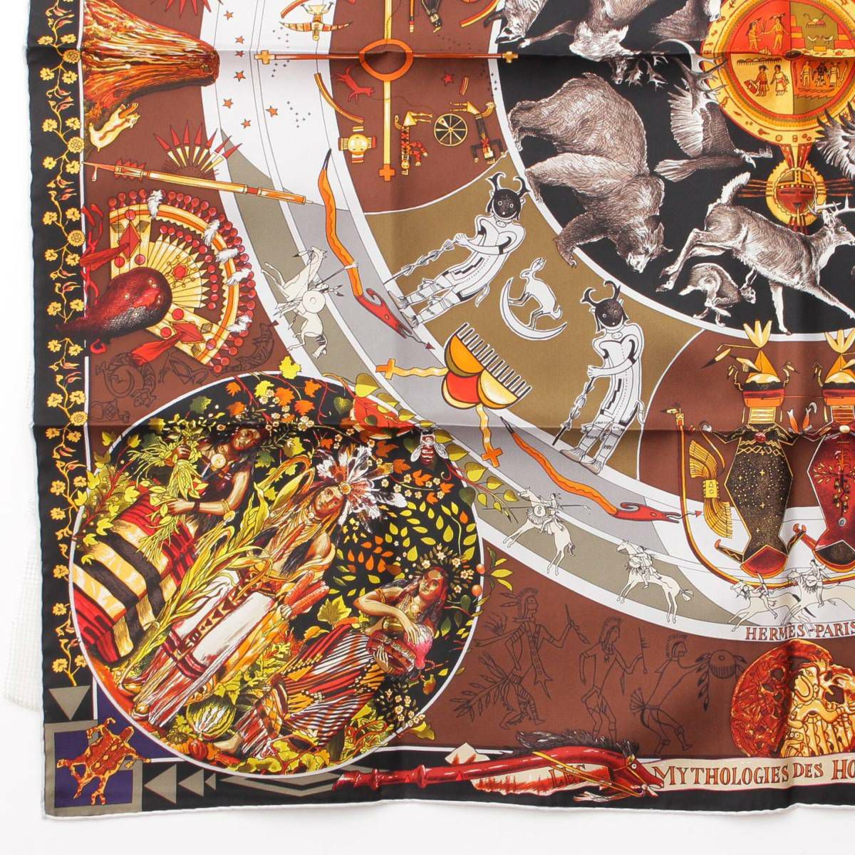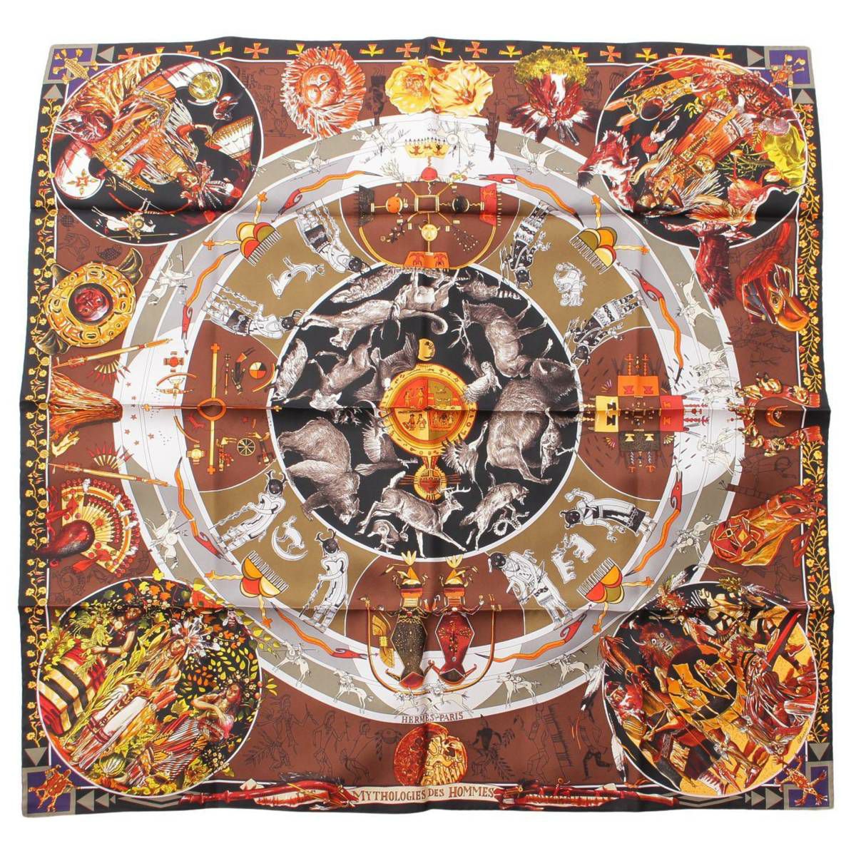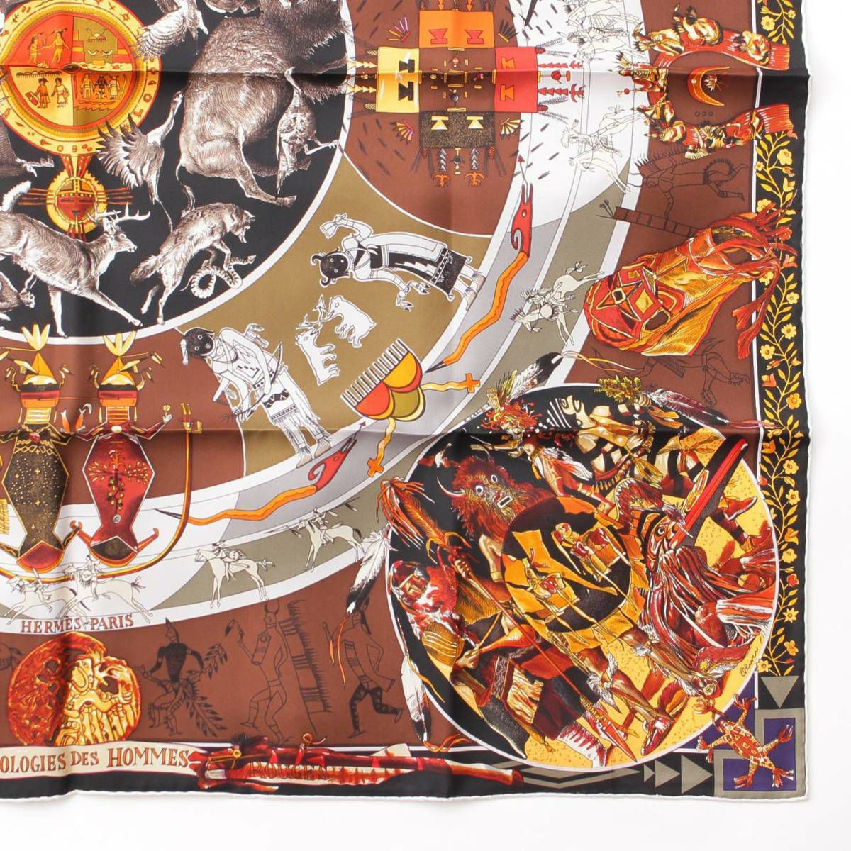 エルメス Hermes カレ90 LES MYTHOLOGIES DES HOMMES ROUGES 褐色の男達の伝説 シルクスカーフ