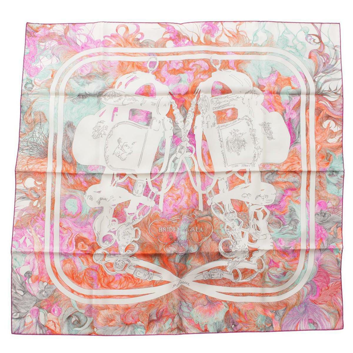 エルメス Hermes カレ90 シルク スカーフ BRIDES de GALA en FINESSE 式典用馬勒 002628S マルチカラー