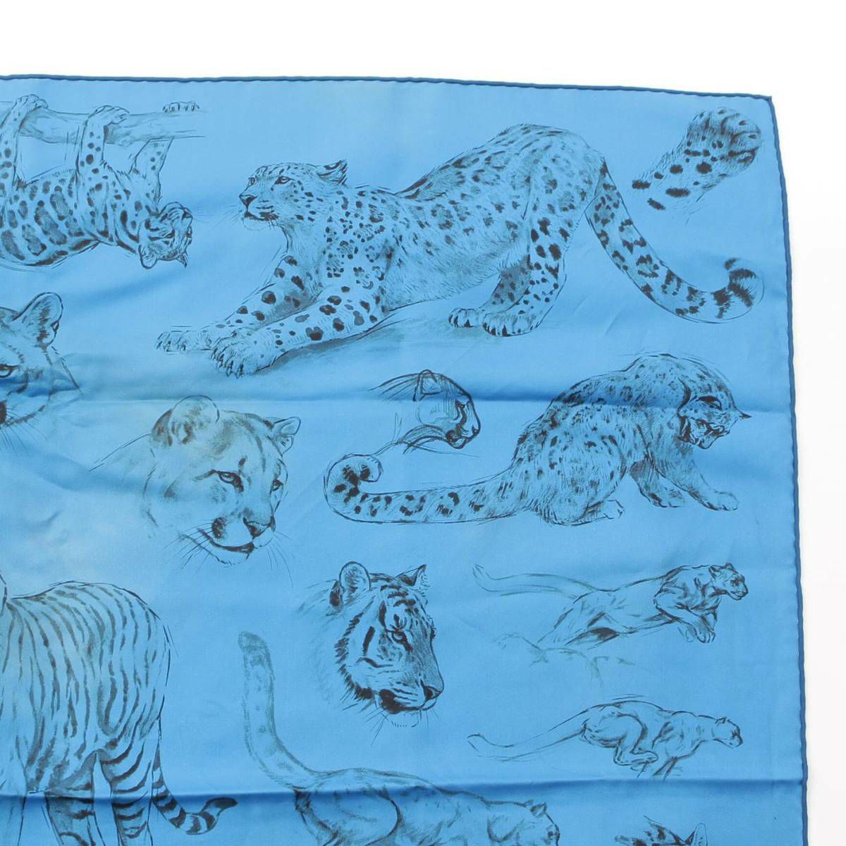 エルメス Hermes カレ90 シルク スカーフ Dans l'atelier de Robert Dallet タイガー トラ 豹 ブルー
