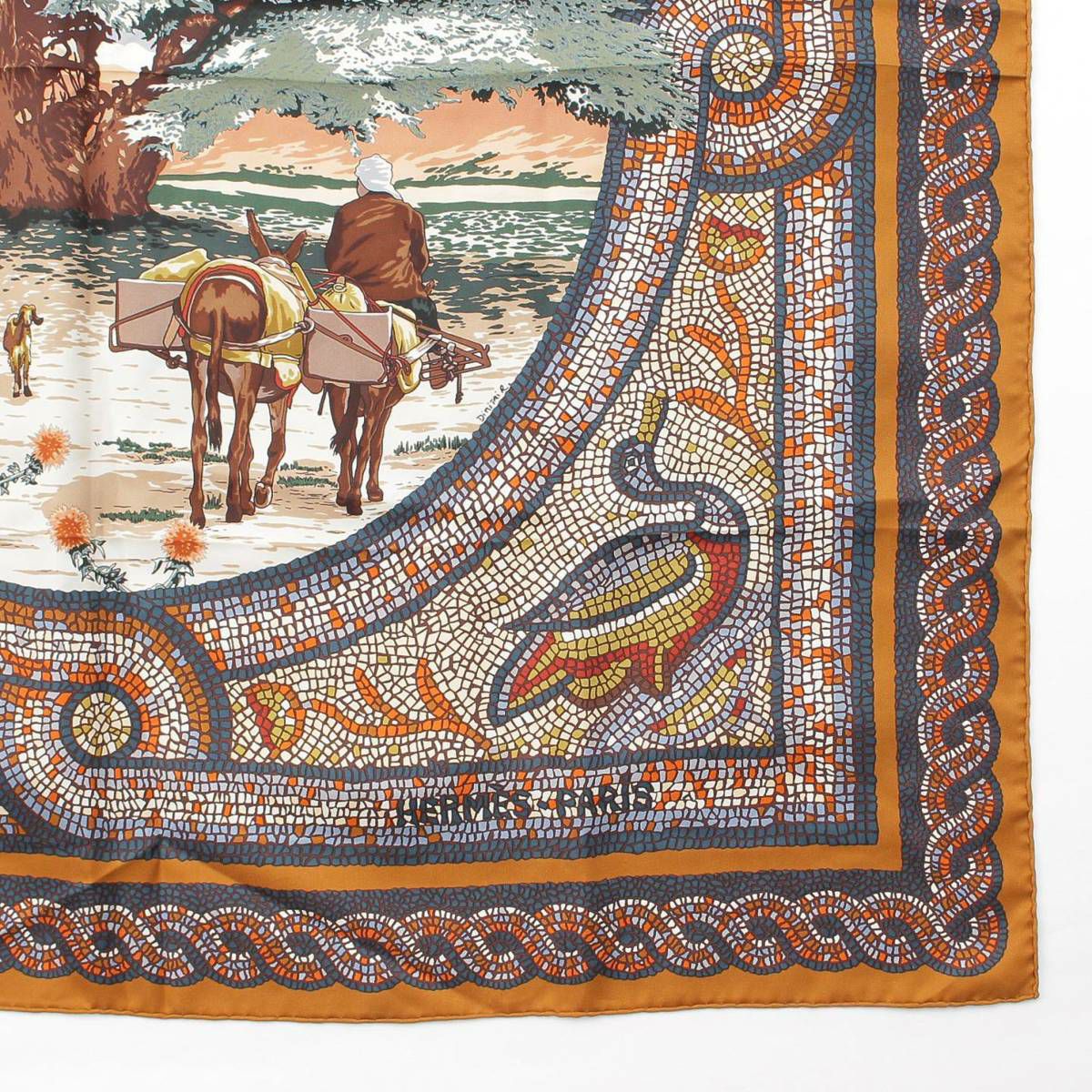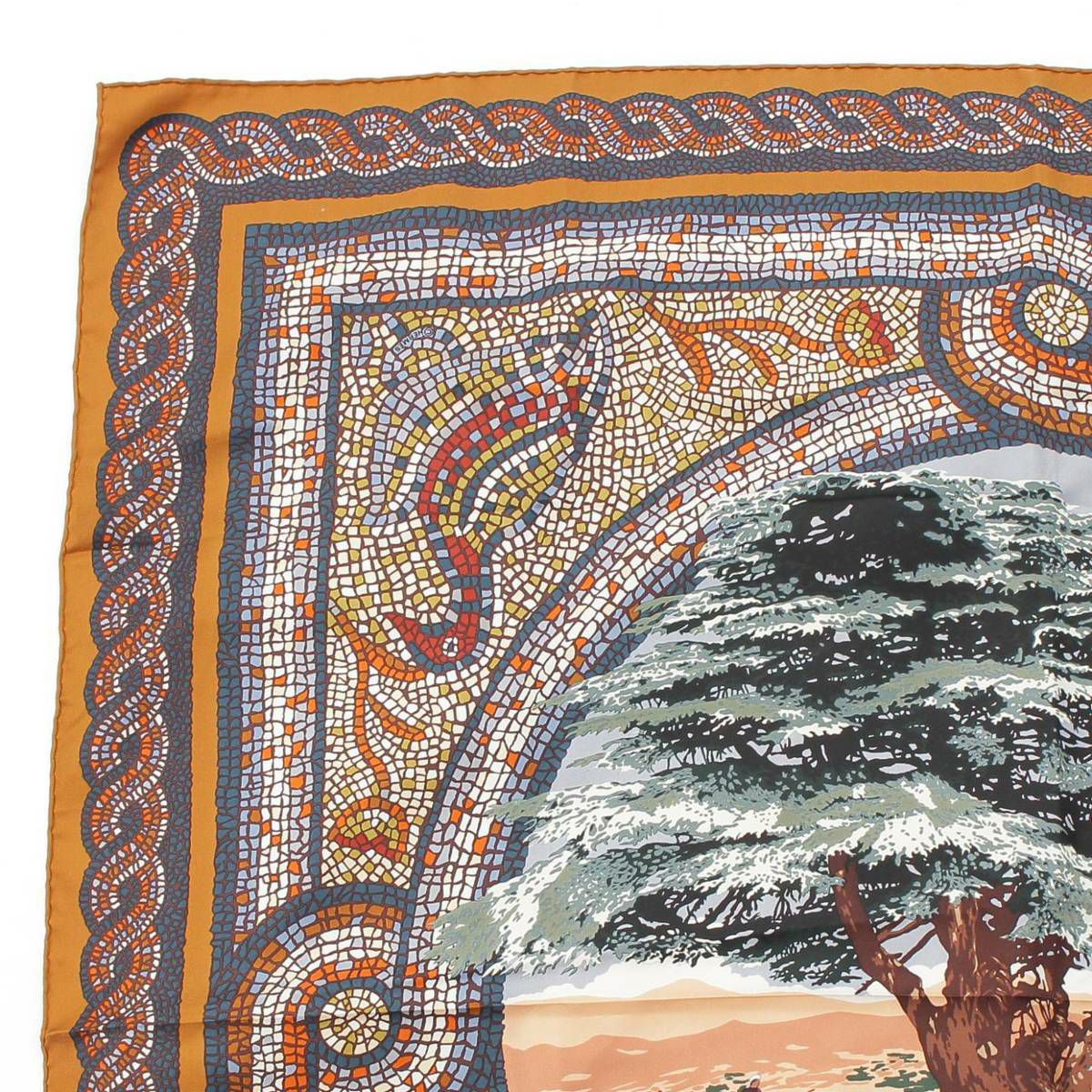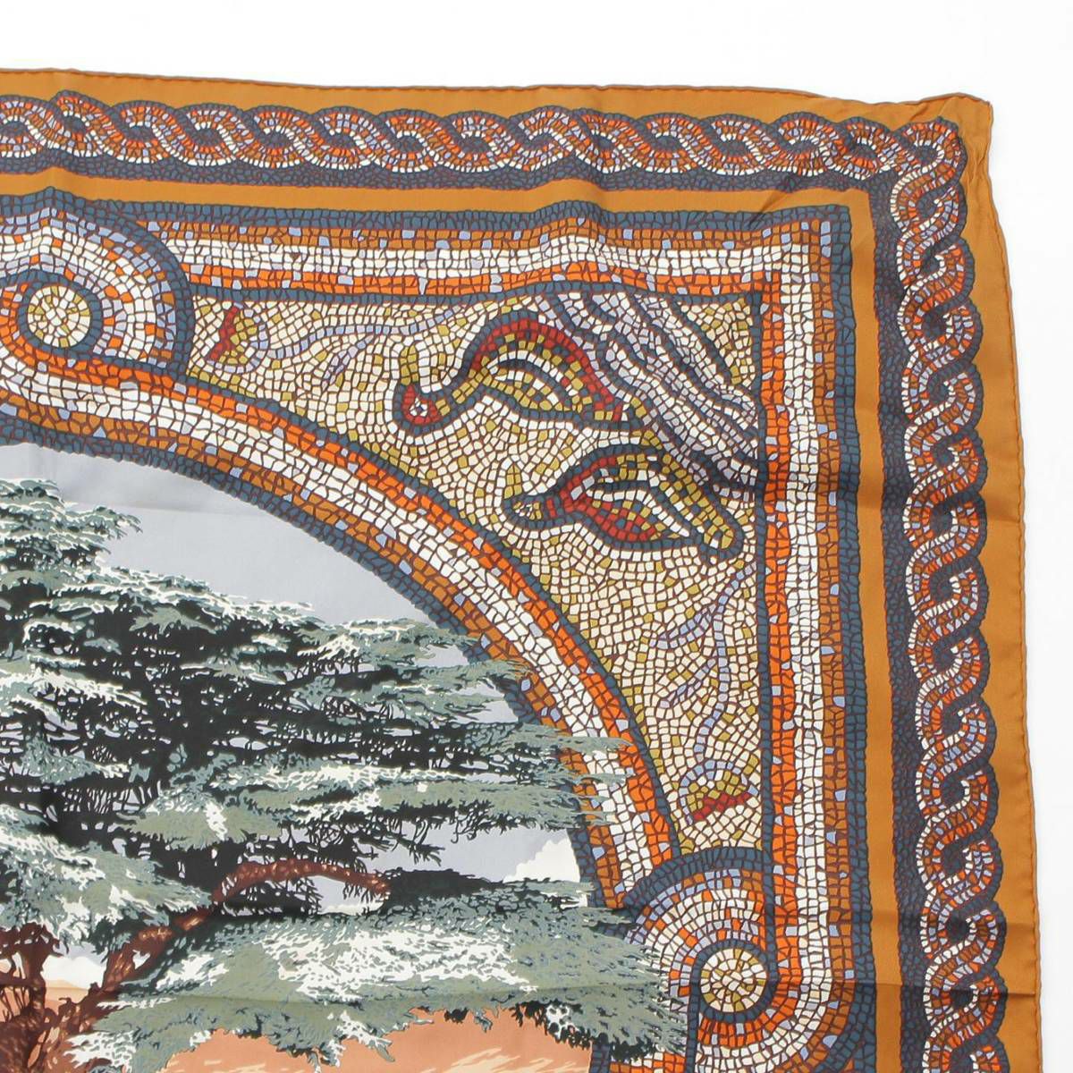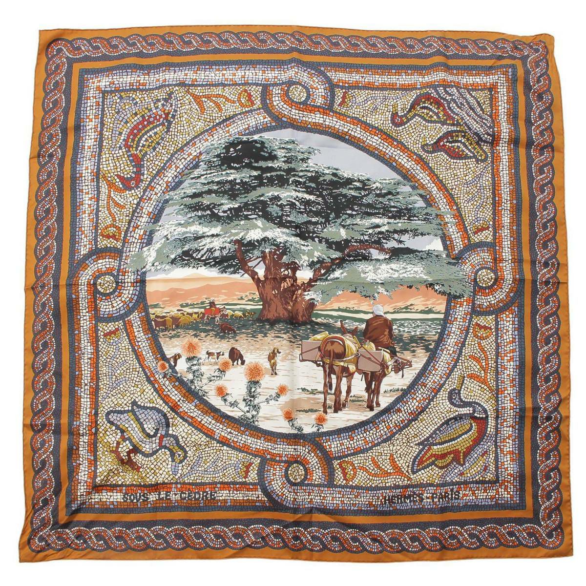 エルメス Hermes カレ90 シルクスカーフ SOUS LE CEDRE ヒマラヤ杉の下で 馬 ブラウン マルチカラー