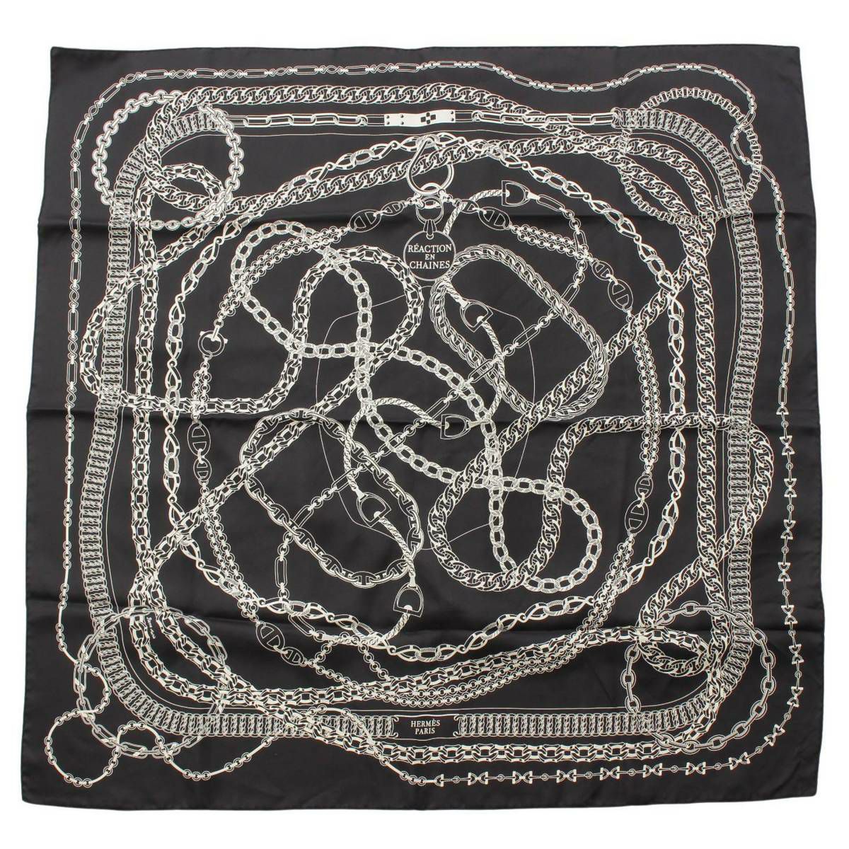 エルメス Hermes カレ90 シルクスカーフ REACTION EN CHAINES レアクション アン シェーヌ ブラック