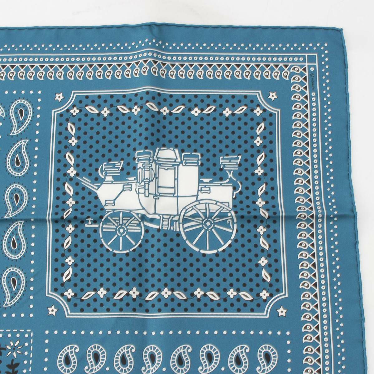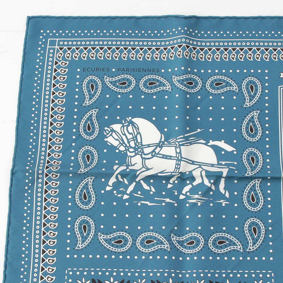 エルメス カレ55 ECURIES PARISIENNES パリの厩舎 バンダナ シルクスカーフ ブルーキュラソー