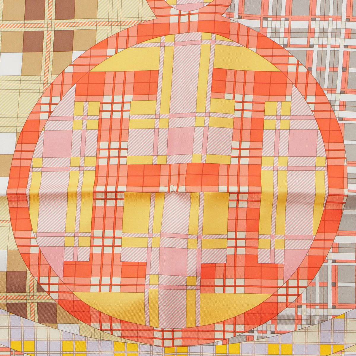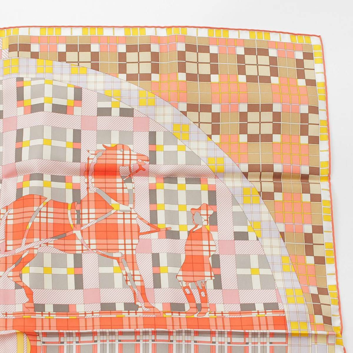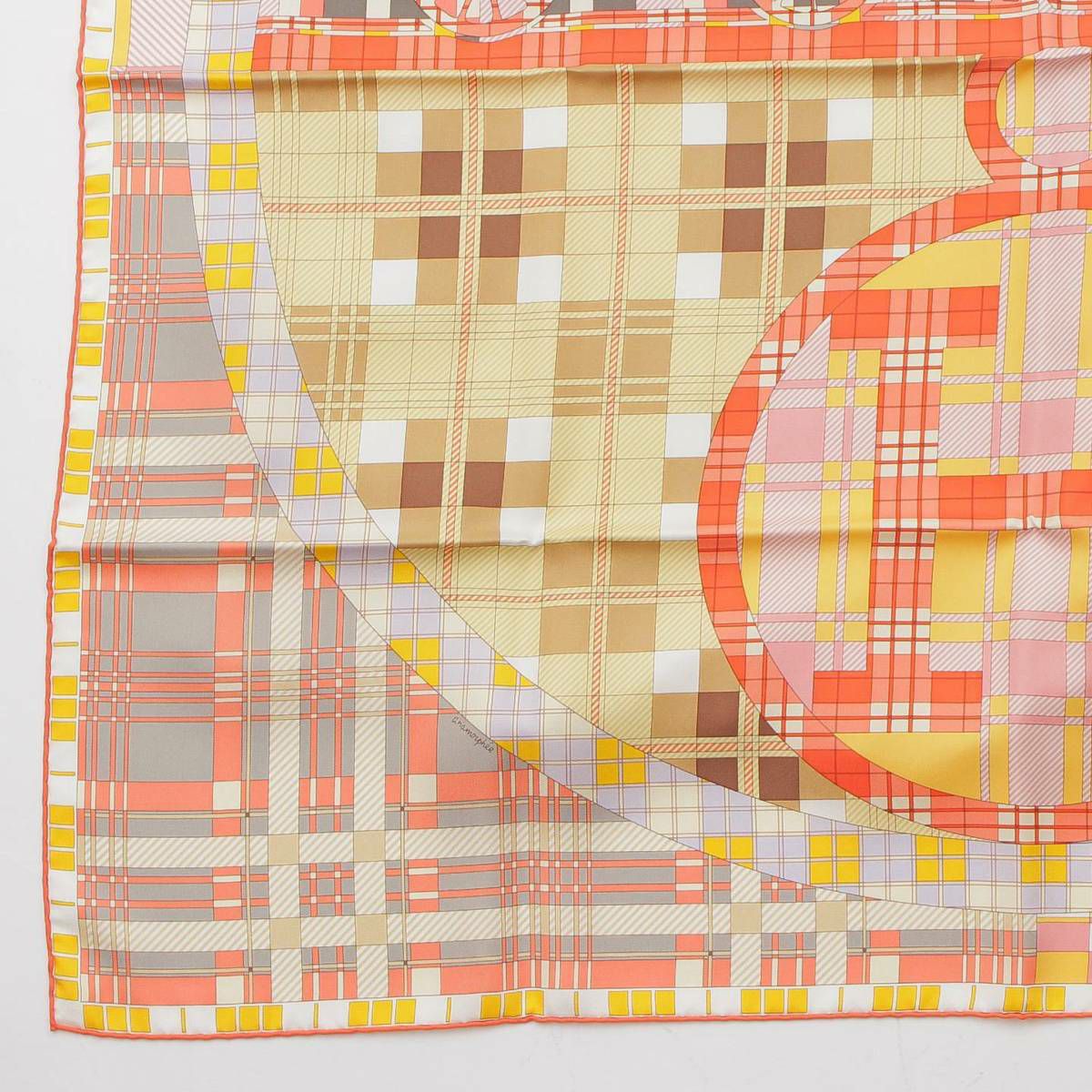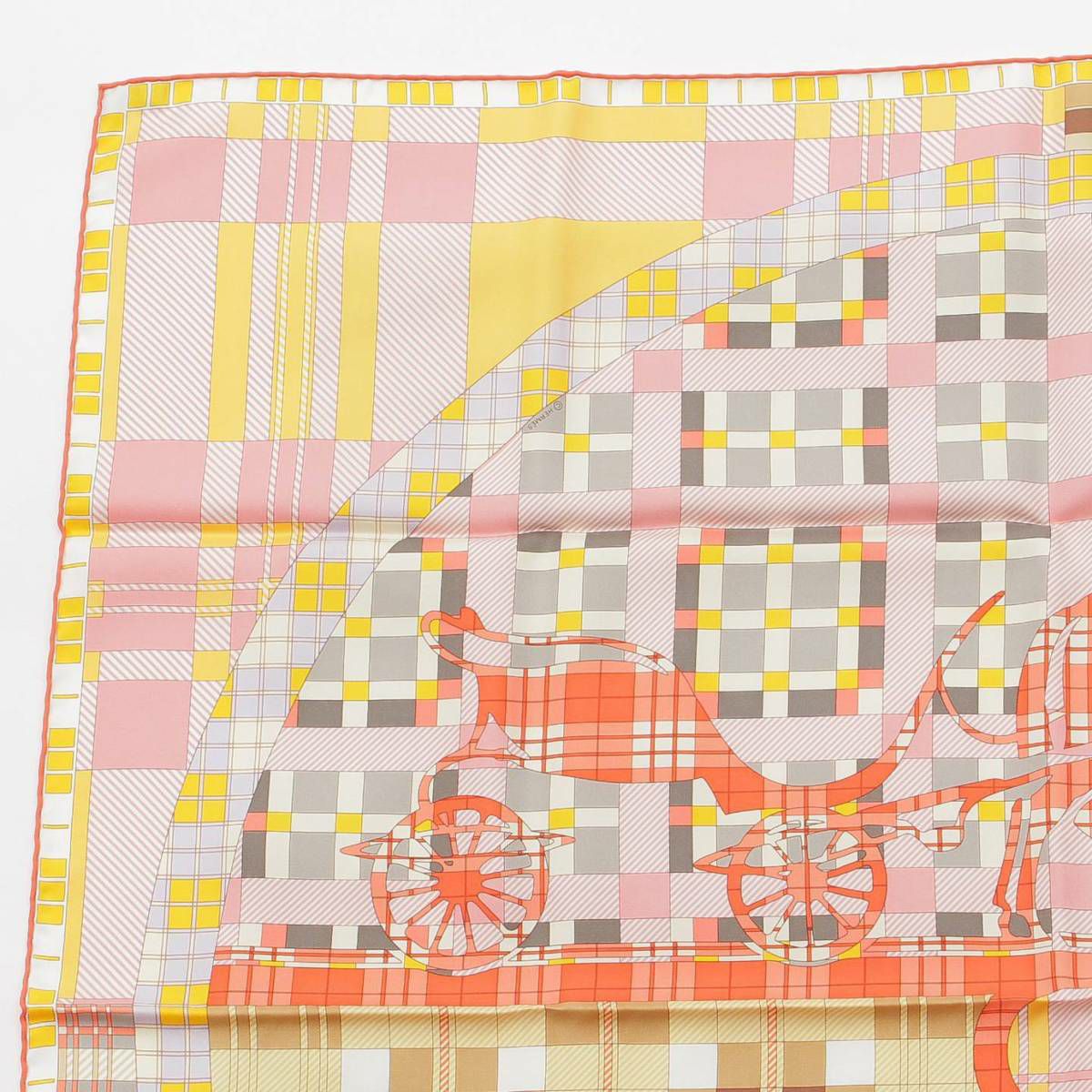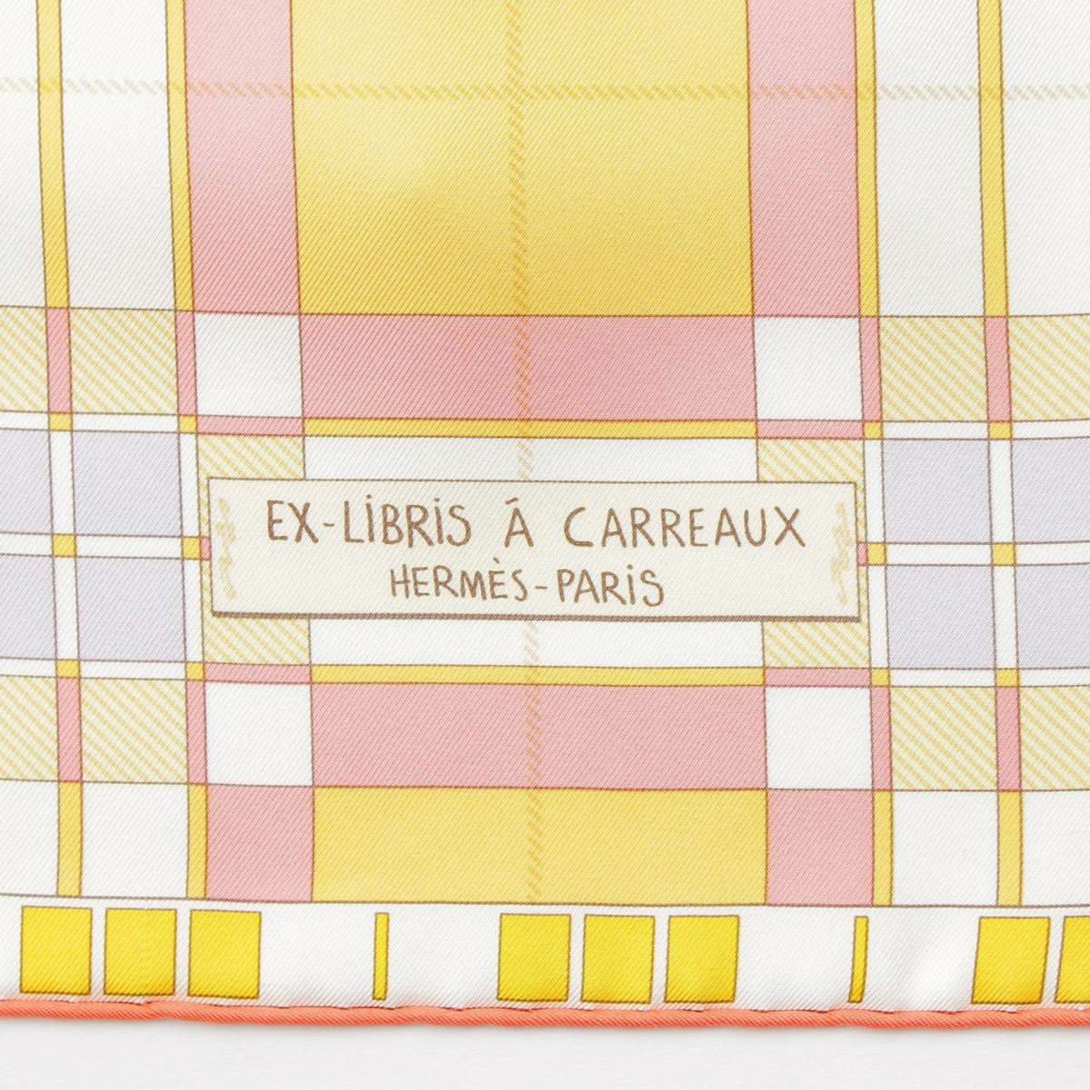 エルメス カレ90 Ex-Libris A Carreaux エクスリブリス チェック シルクスカーフ コーラル