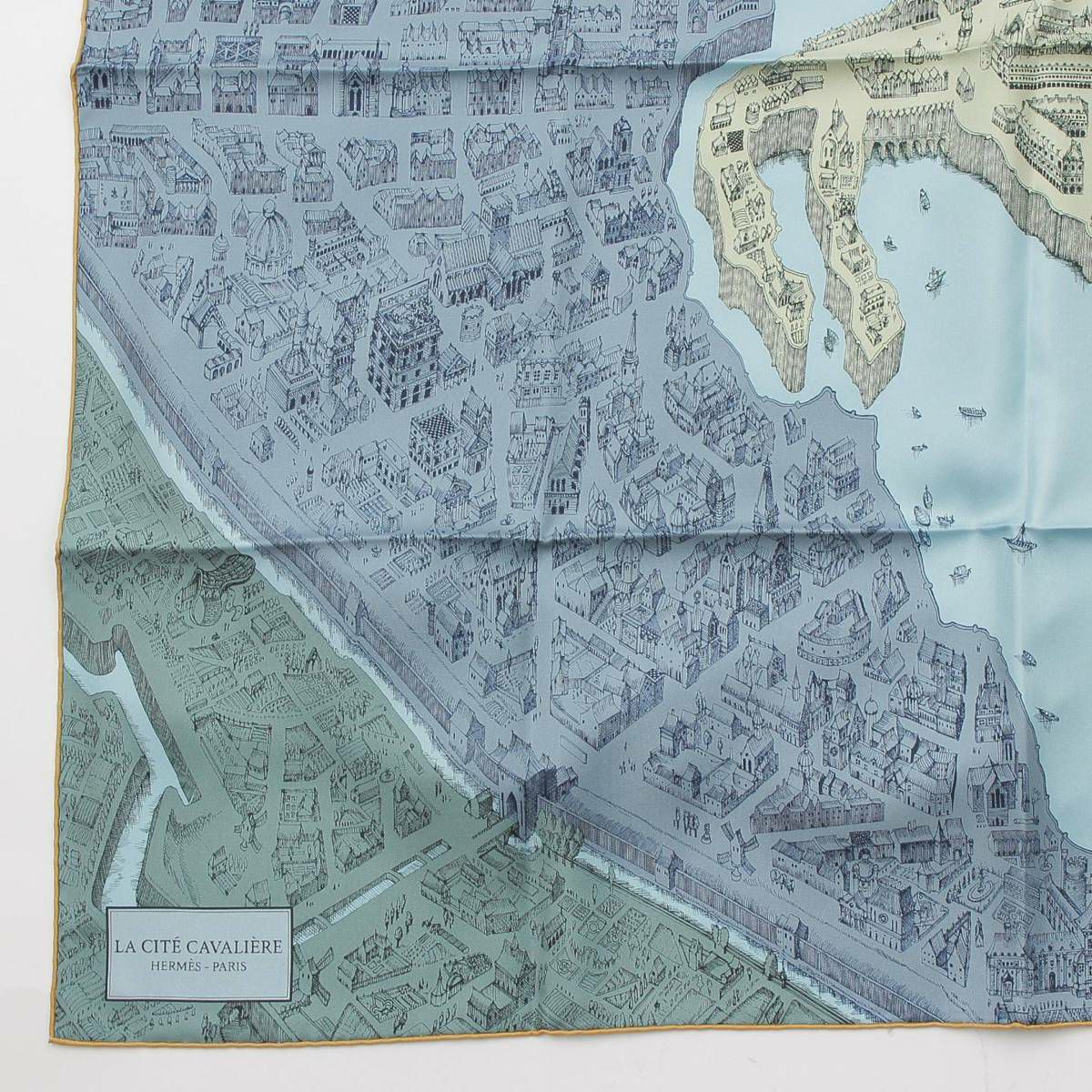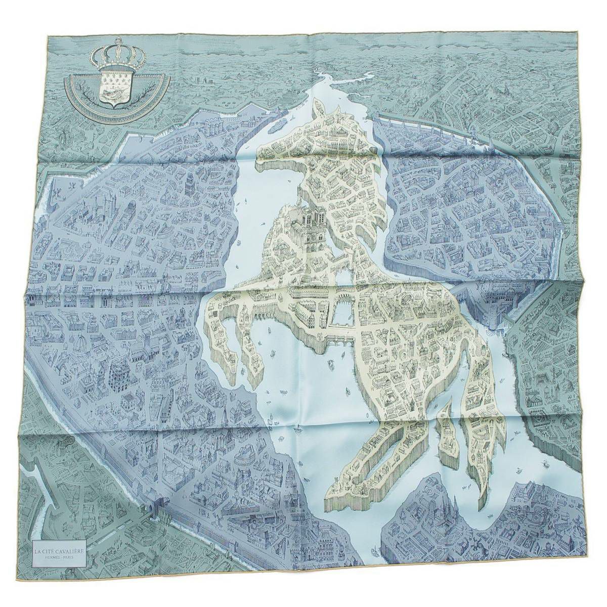 エルメス Hermes カレ90 LA CITE CAVALIERE シテ カヴァリエール シルクスカーフ ブルー