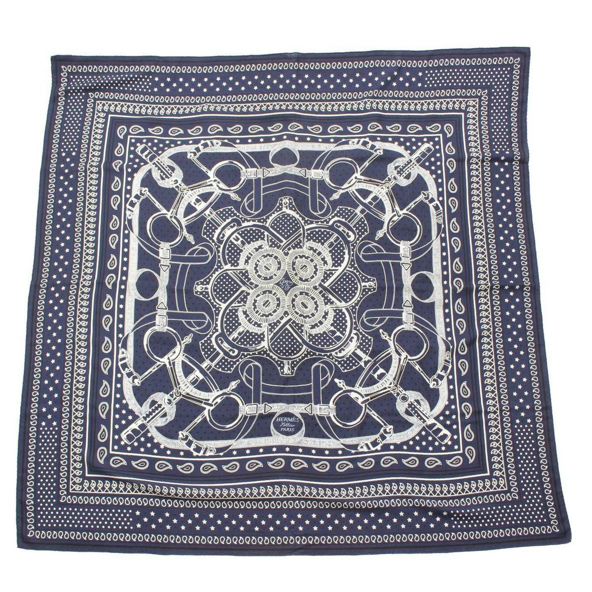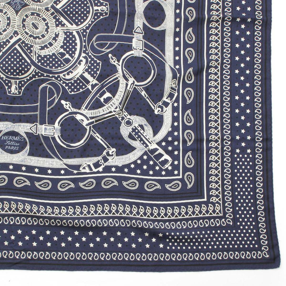 エルメス Hermes カレジェアン 140 Eperon d'or 黄金の拍車 カシミヤ シルク 大判スカーフ ネイビー