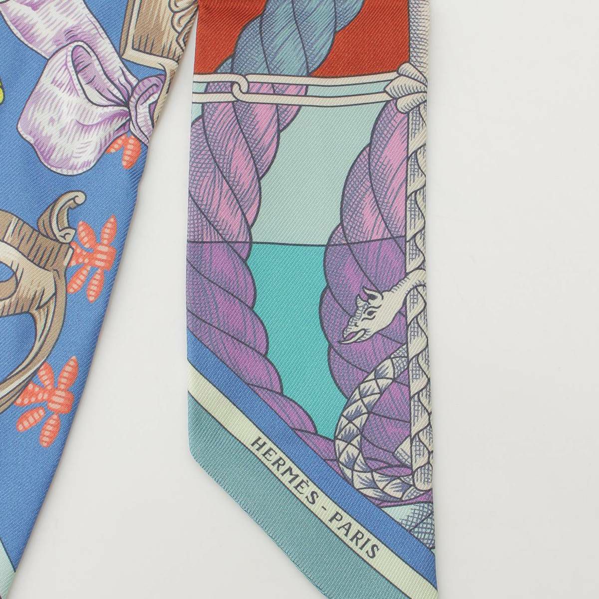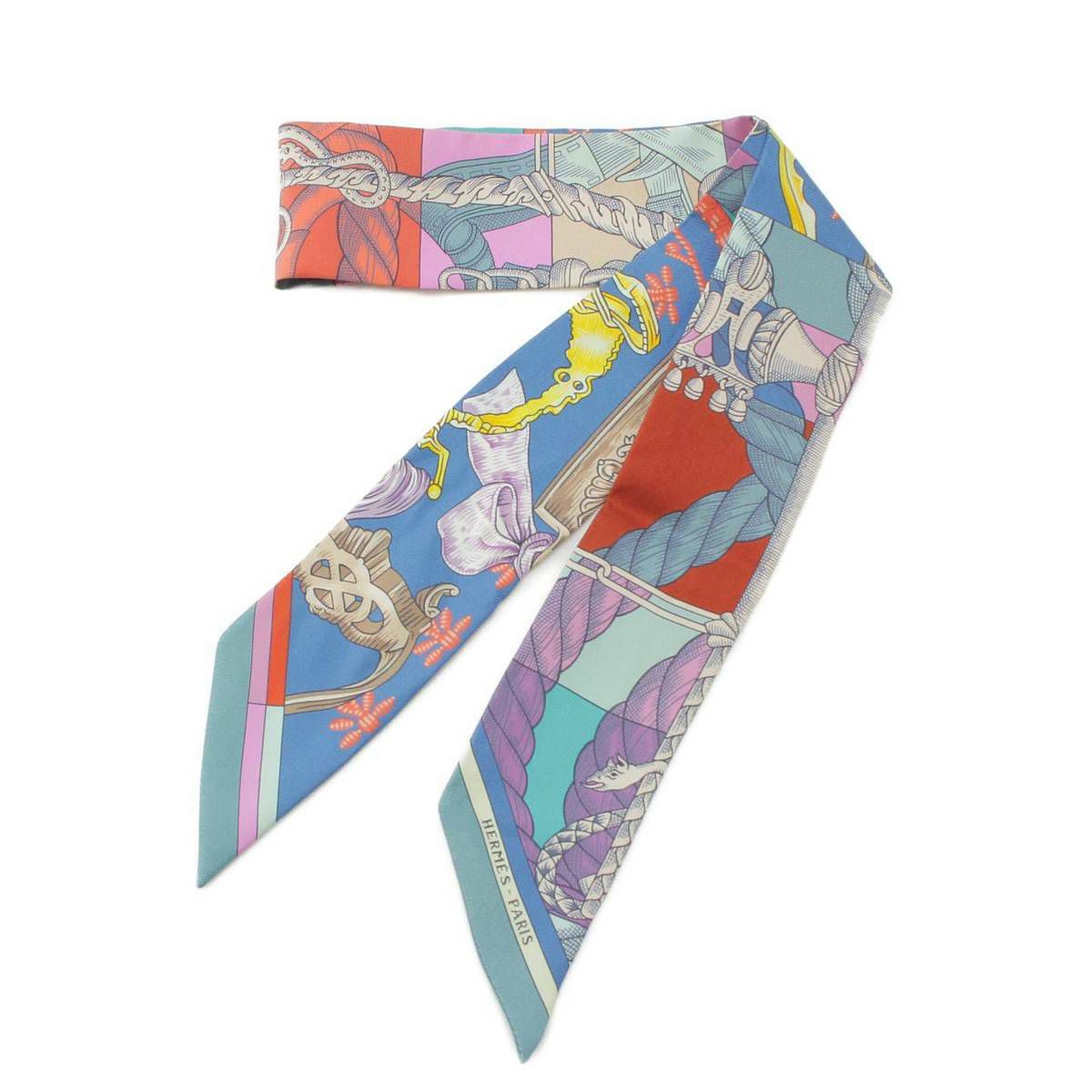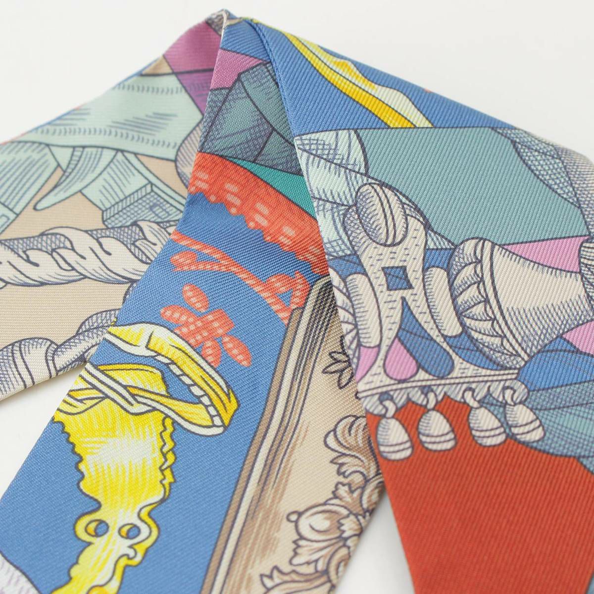 エルメス ツイリー シルクスカーフ カヴァッレリア デトリエ 騎兵の鐙 総柄 マルチカラー