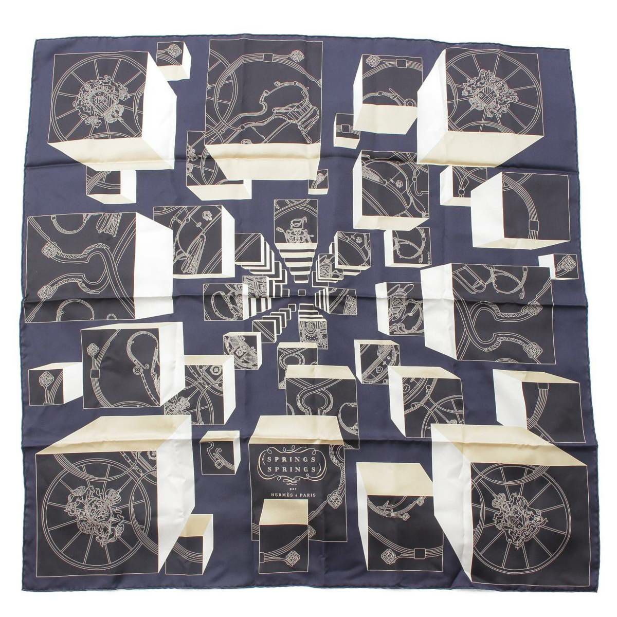 エルメス Hermes 22AW カレ90 スカーフ Springs Springs スプリング・スプリング 003932S ネイビー