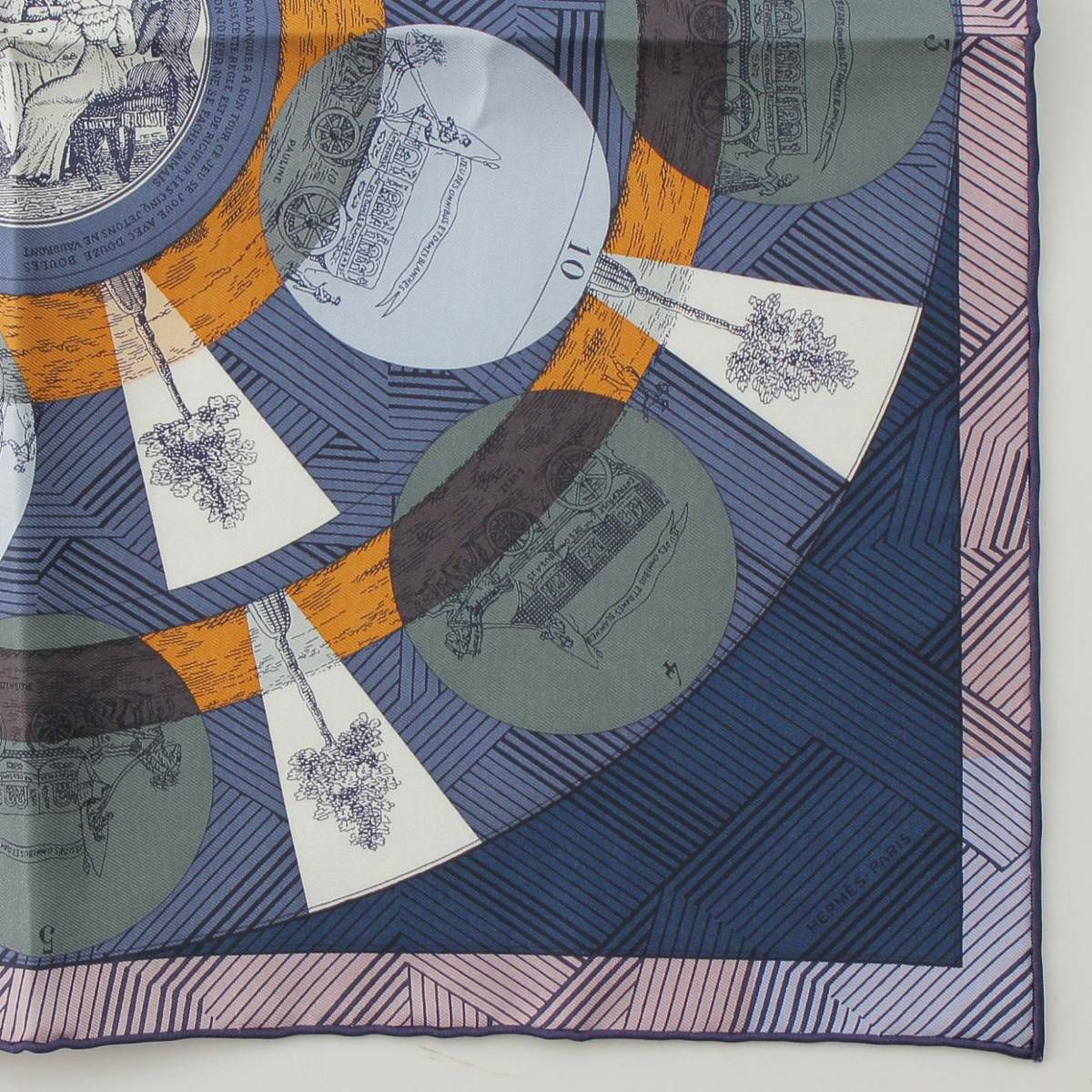 エルメス カレ45 シルク スカーフ JEU DES OMNIBUS REMIX マルチカラー ネイビー