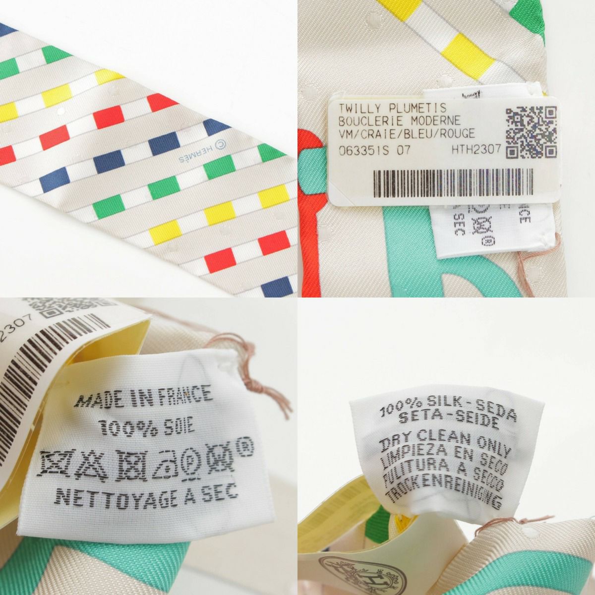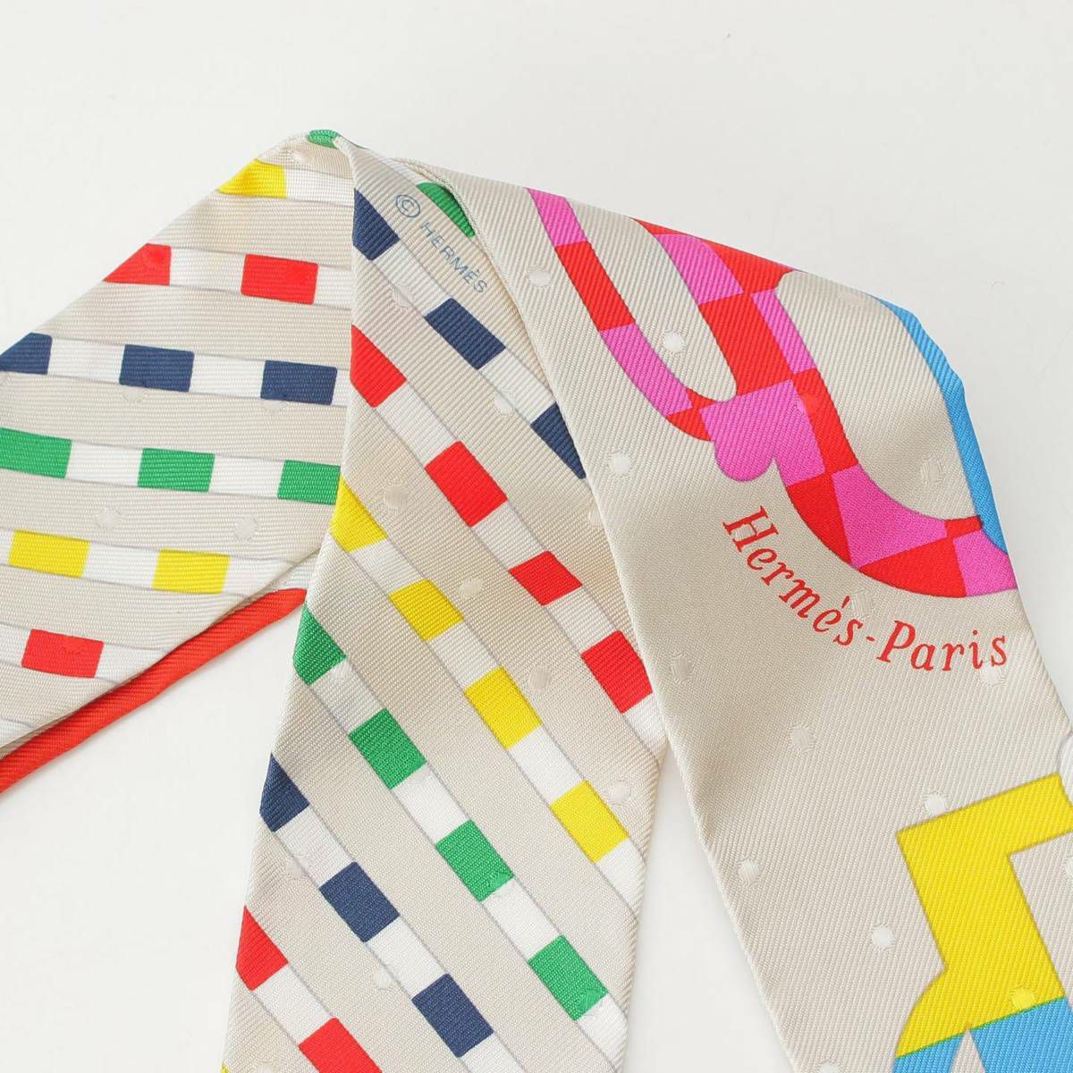 エルメス ツイリー シルク スカーフ Bouclerie moderne モダンなバックル クレ ホワイト