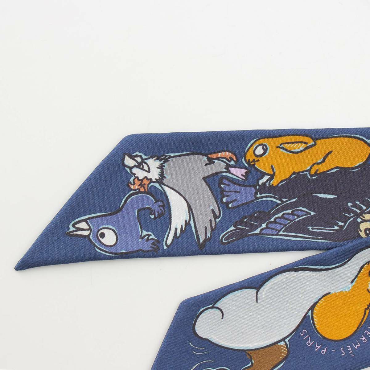 エルメス シルク スカーフ ツイリー Mille et Un Lapins 千と一のウサギ マルチカラー ネイビー