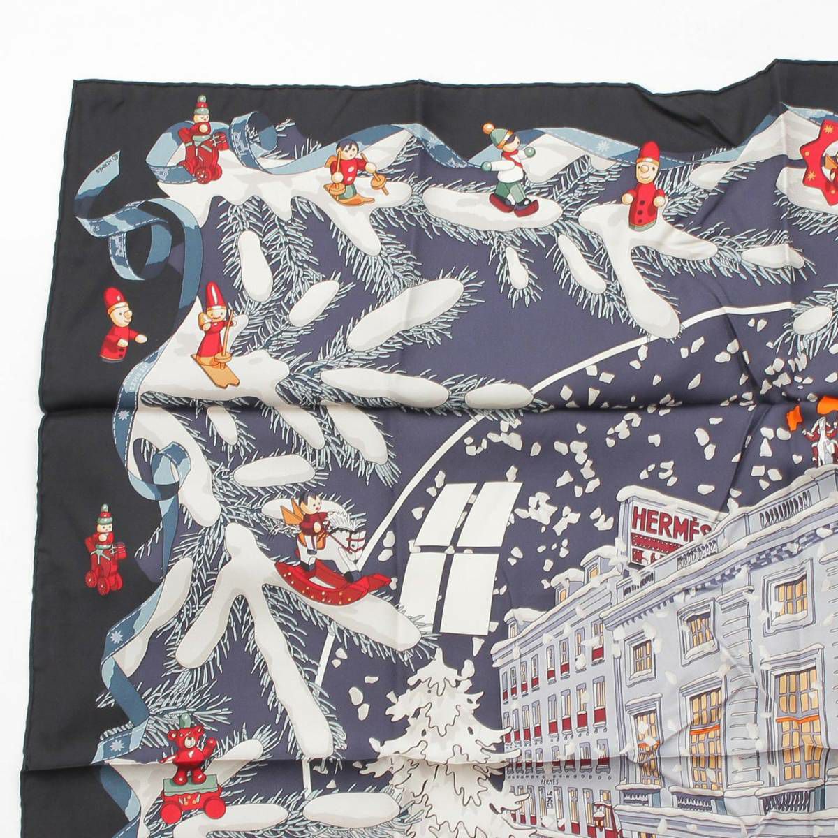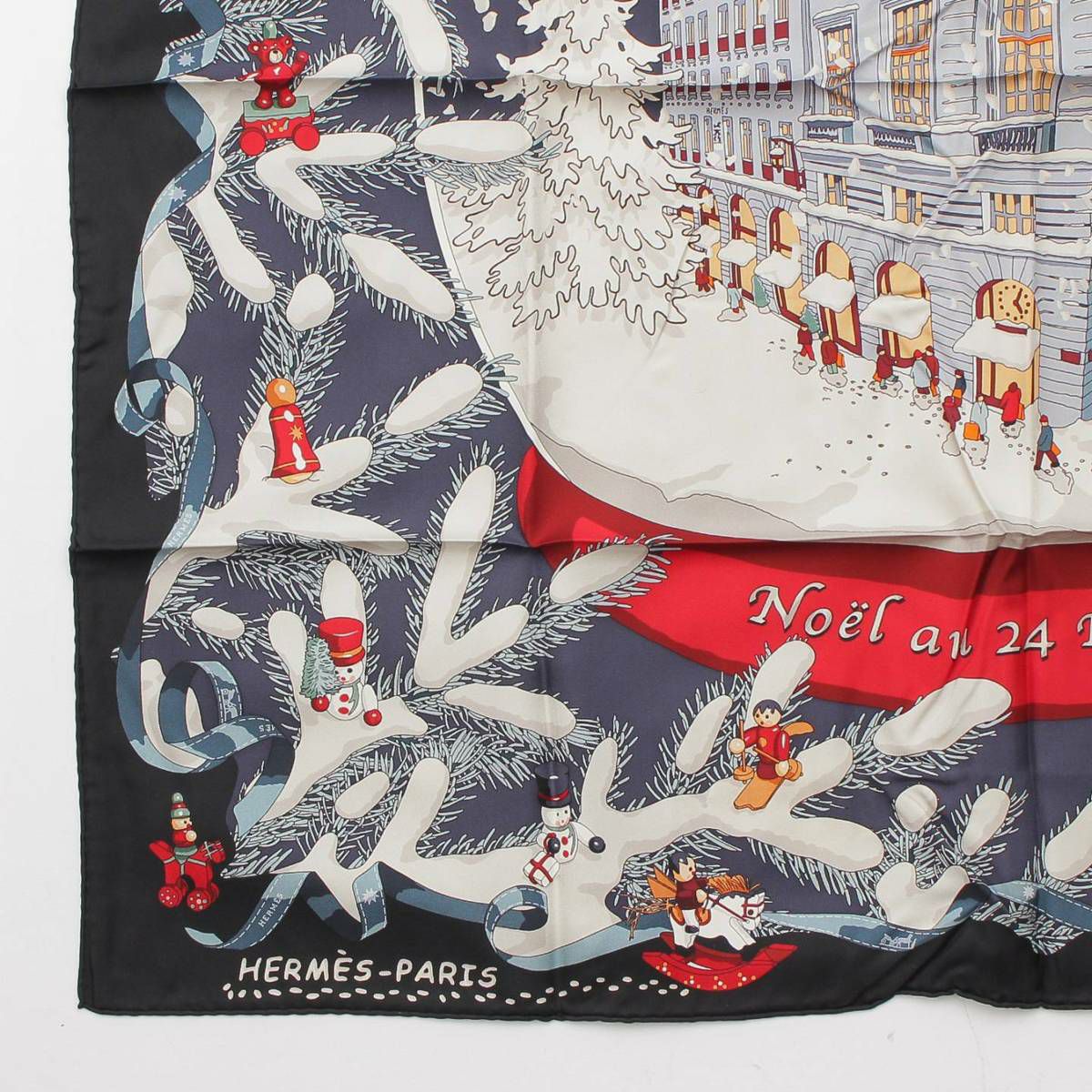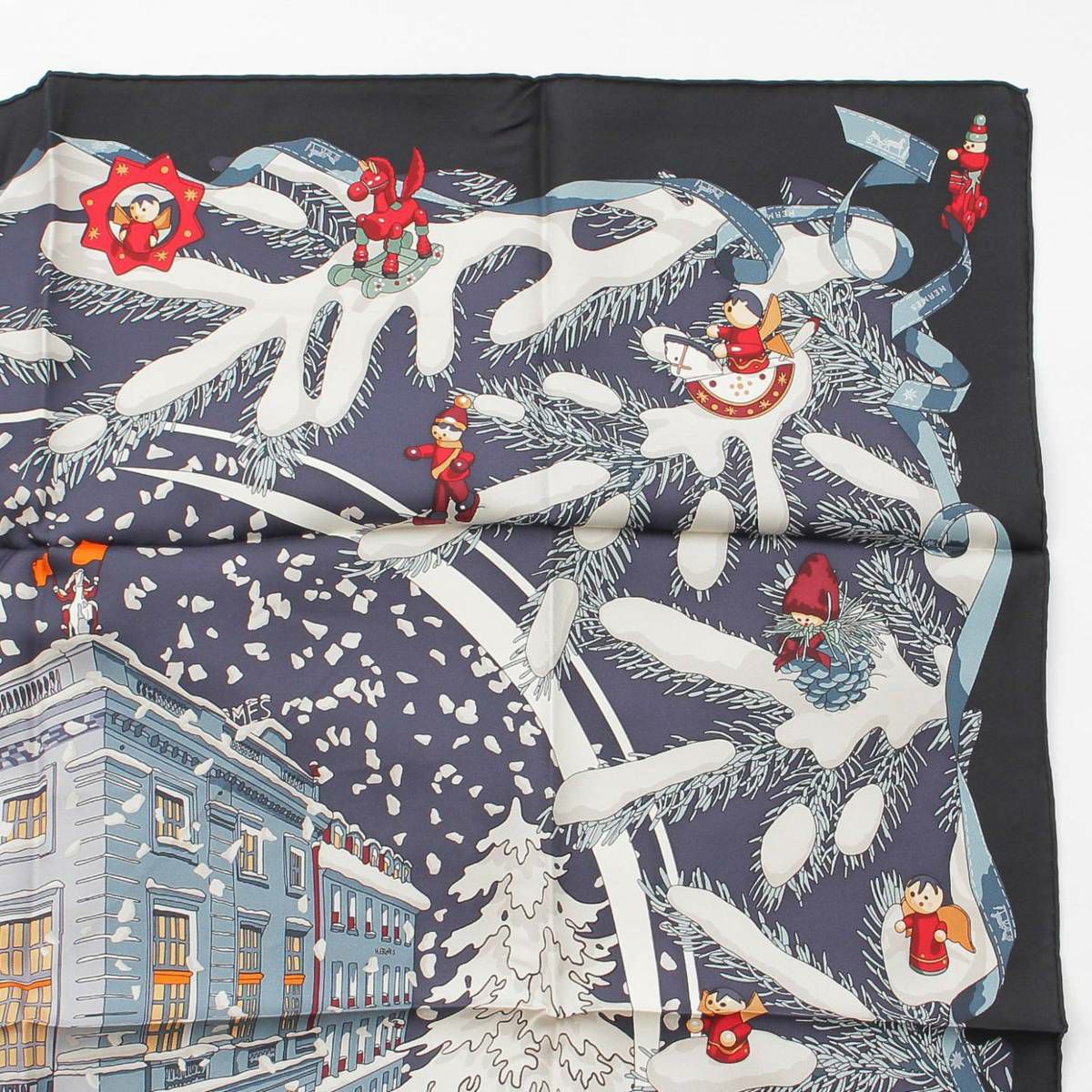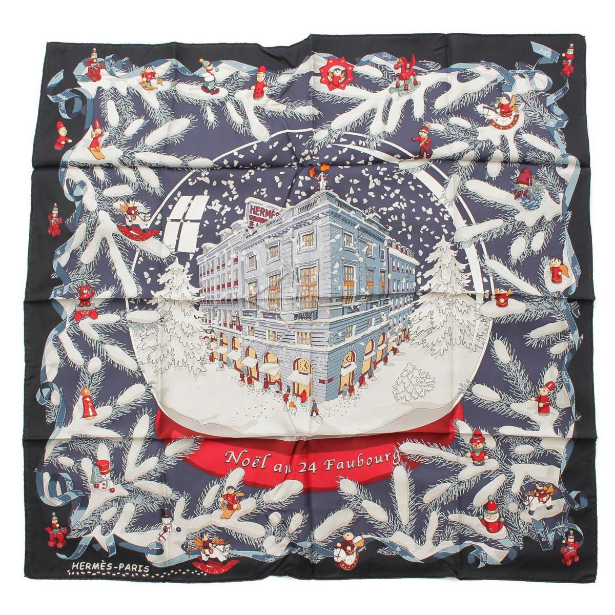 エルメス カレ90 Noel au 24 Faubourg フォーブル24番地のクリスマス シルクスカーフ ブラック