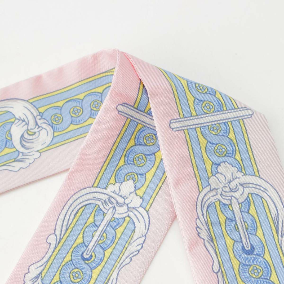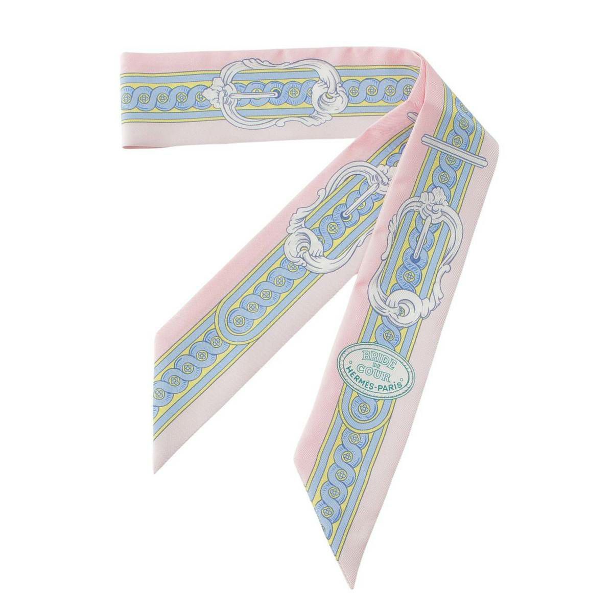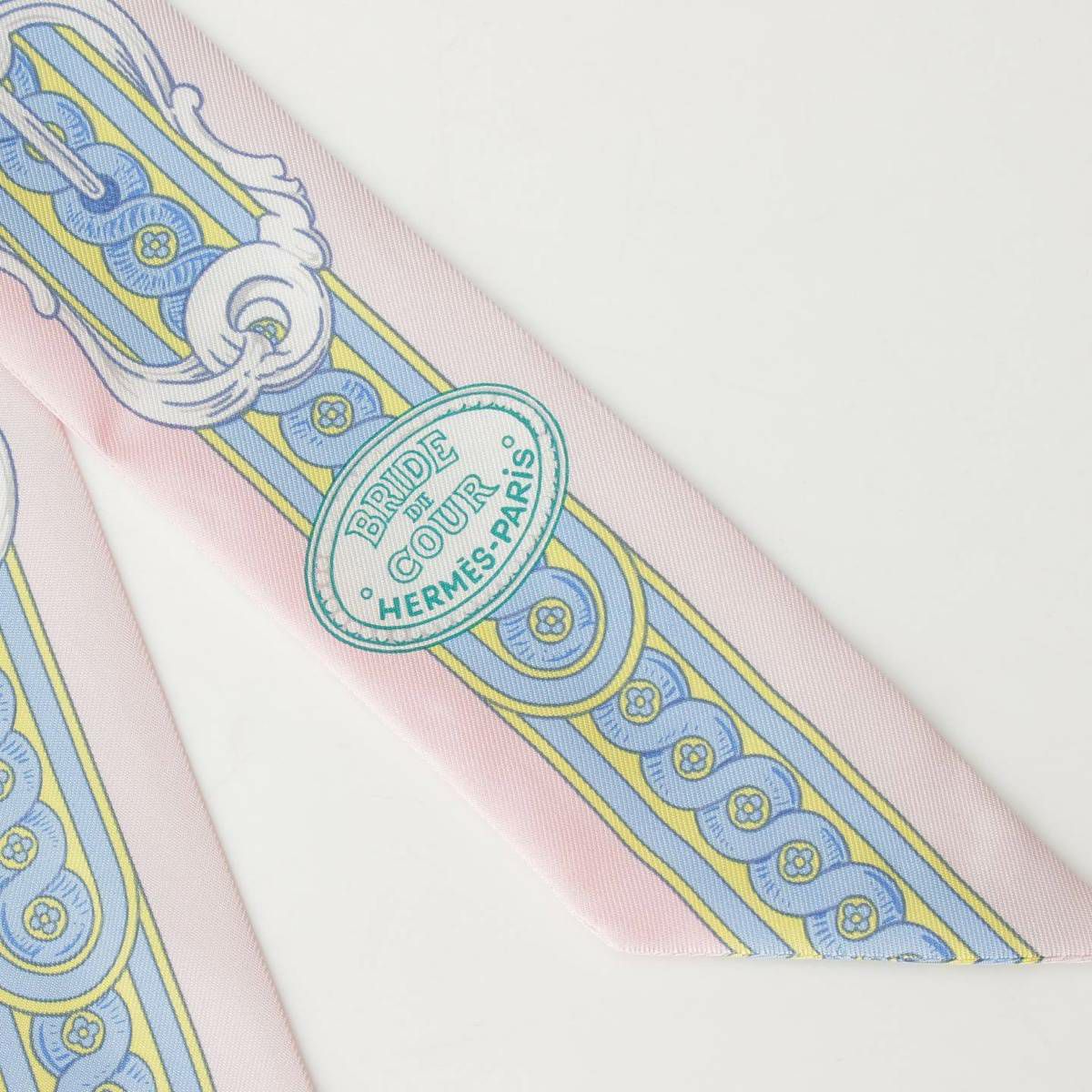 エルメス ツイリー BRIDE DE COUR 法廷の勒 シルクスカーフ ピンク×ライトブルー×イエロー