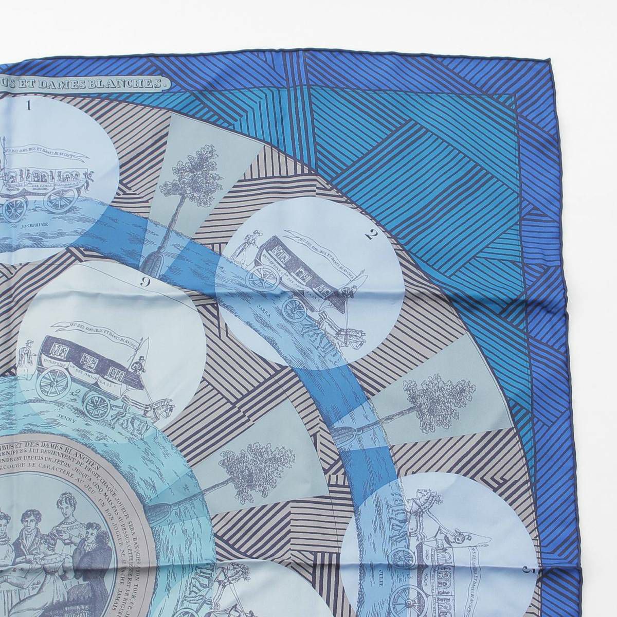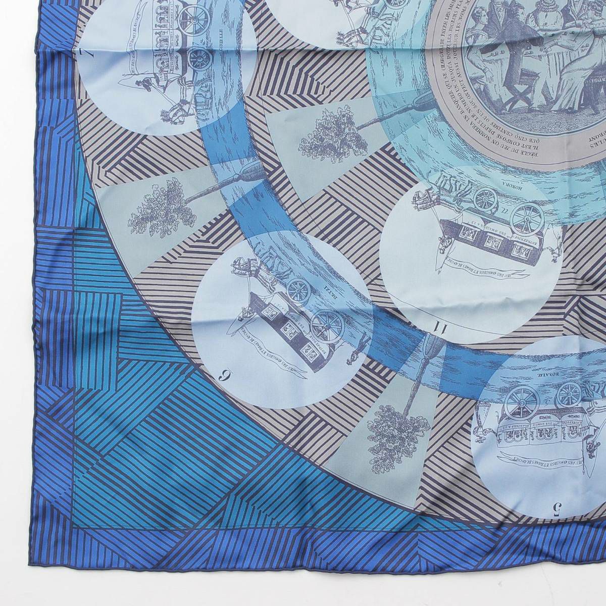 エルメス カレ90 JEU DES OMNIBUS REMIX オムニバスゲーム リミックス シルクスカーフ ブルー