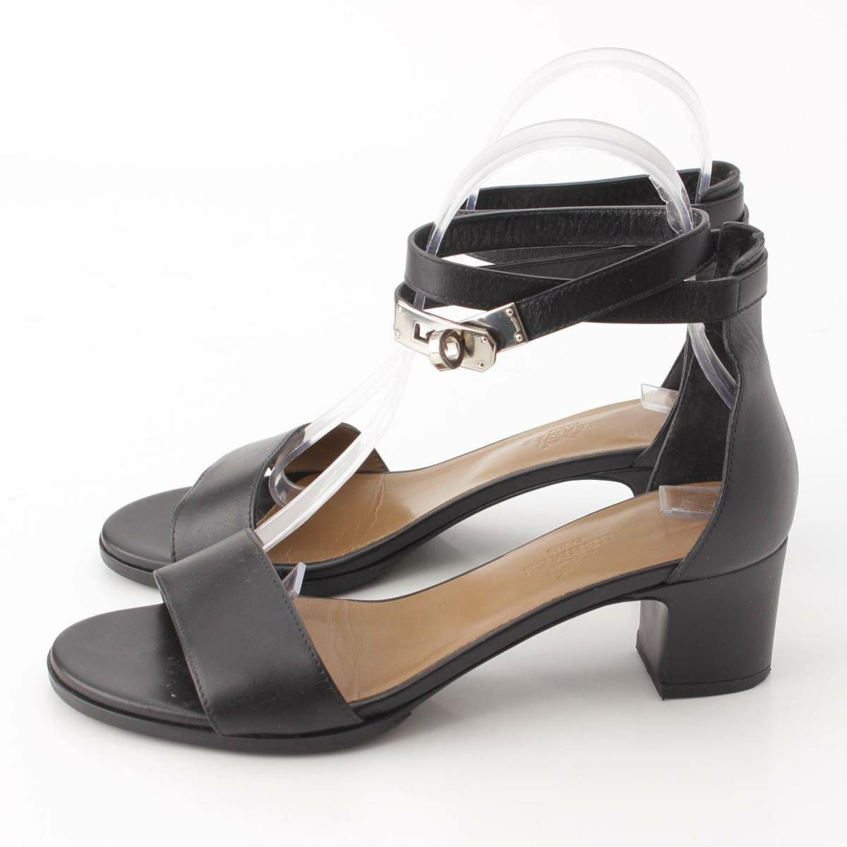 エルメス マネージュ ケリー金具 レザー ストラップ ヒール サンダル 161129Z ブラック 36 1/2