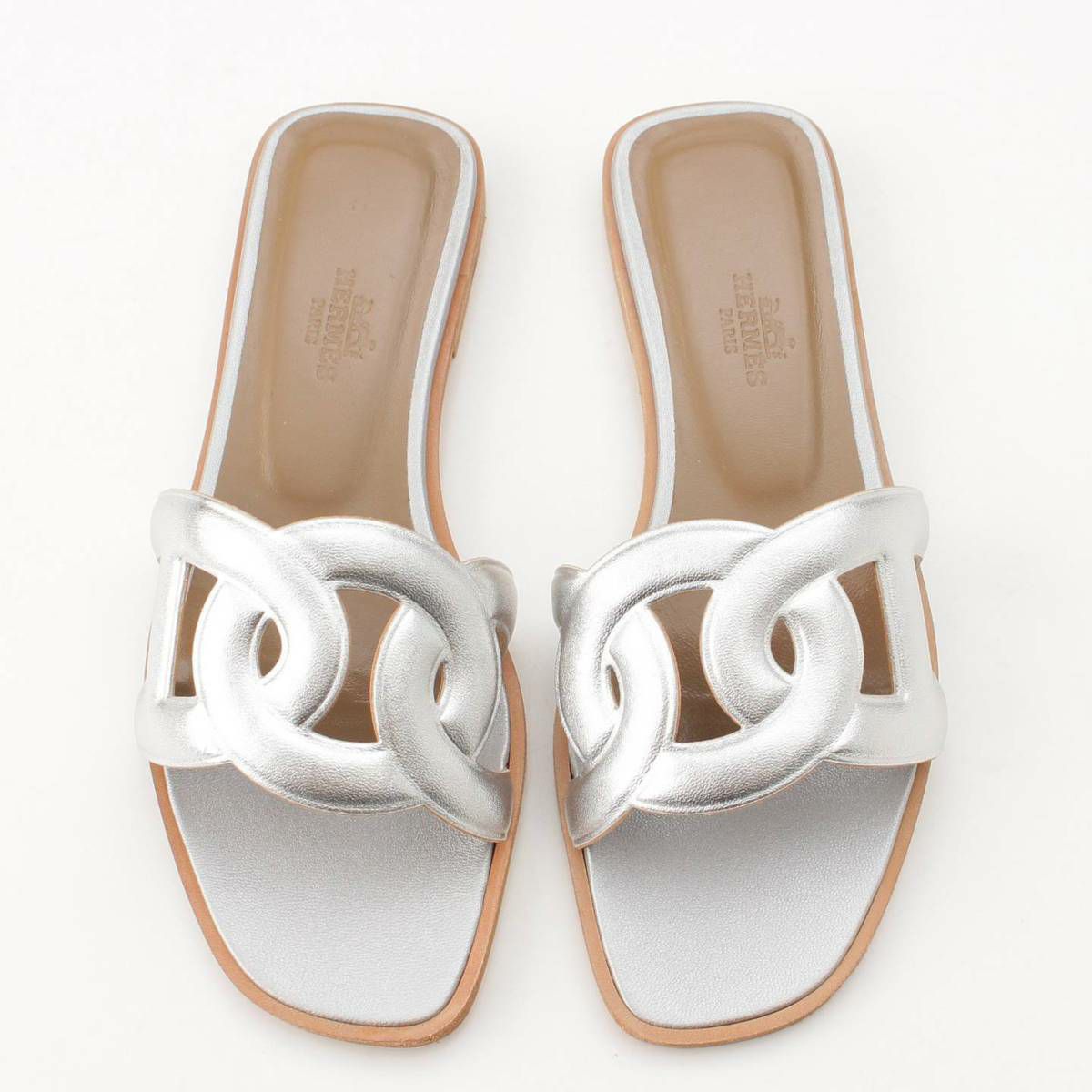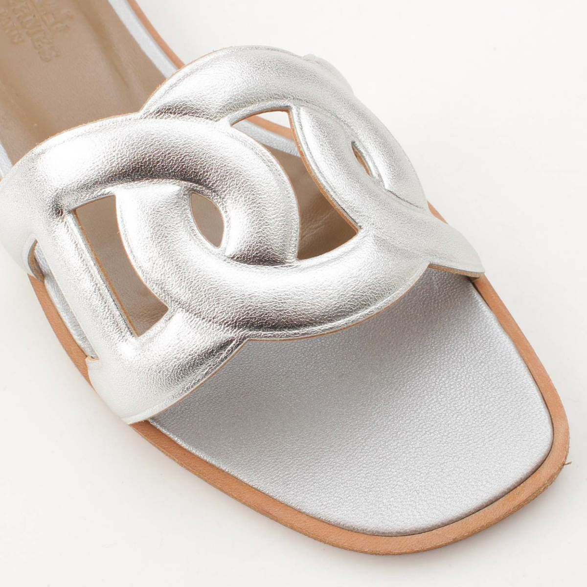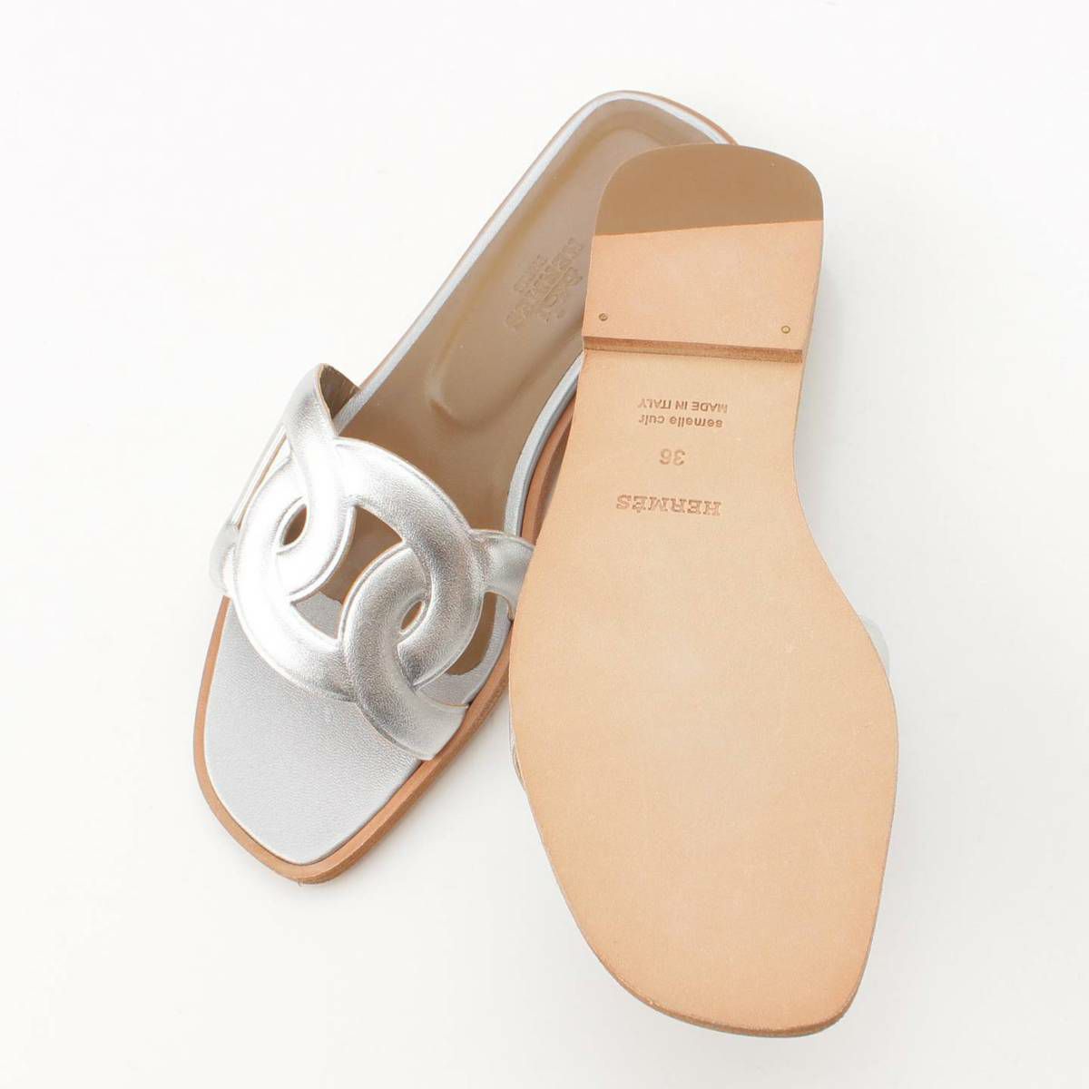 エルメス Hermes アロハ シェーヌダンクル レザー フラット サンダル シルバー 36