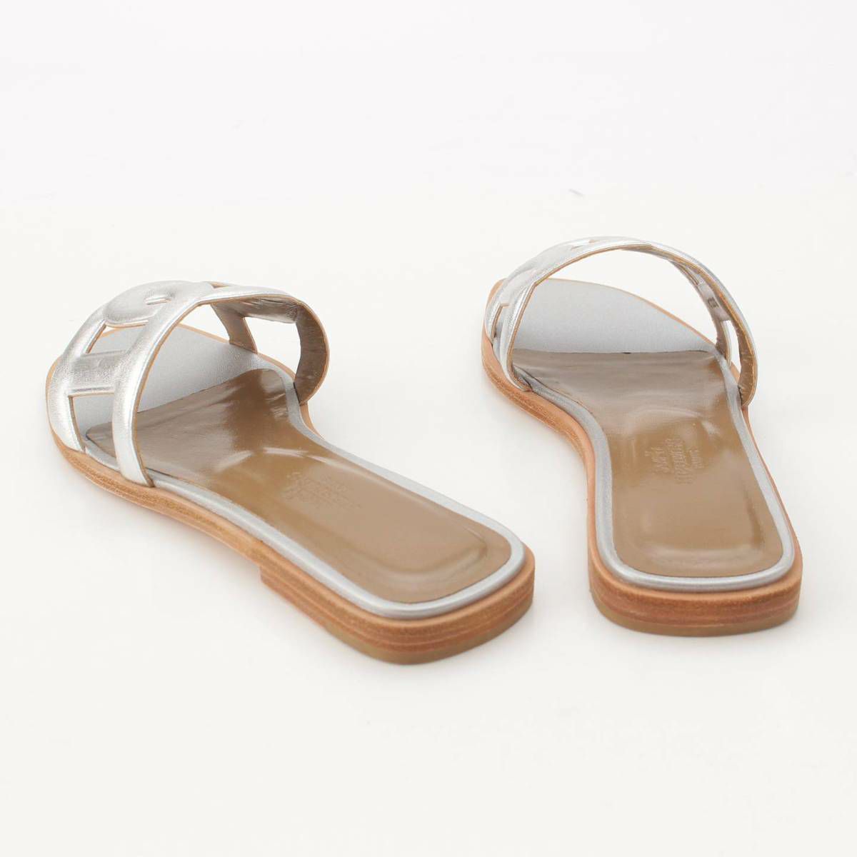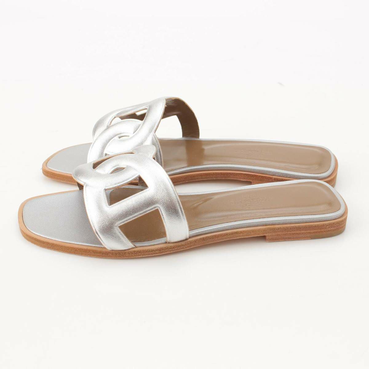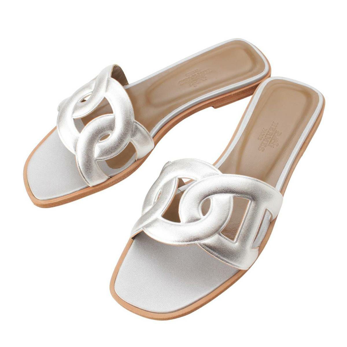 エルメス Hermes アロハ シェーヌダンクル レザー フラット サンダル シルバー 36