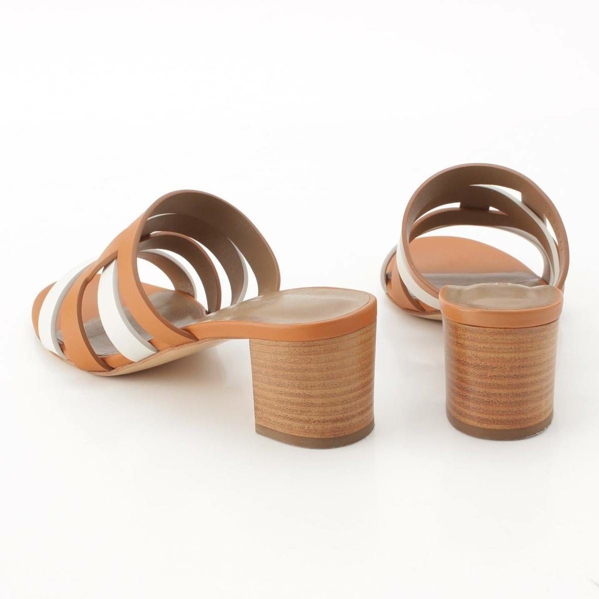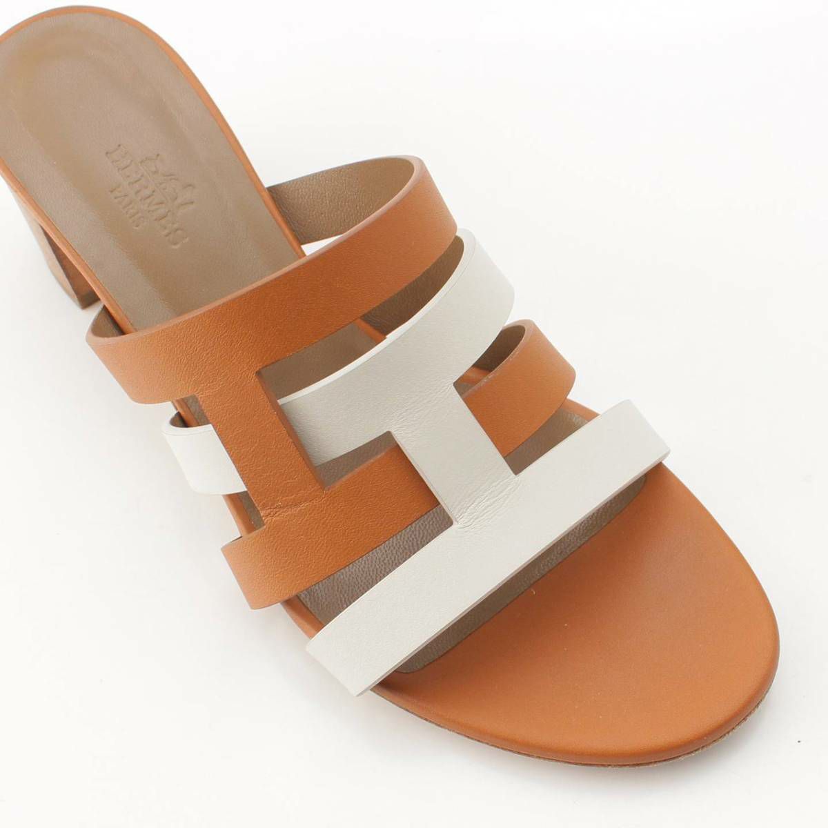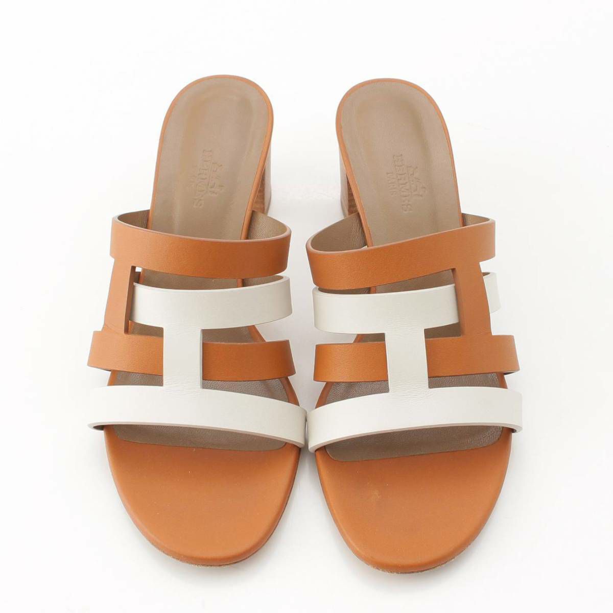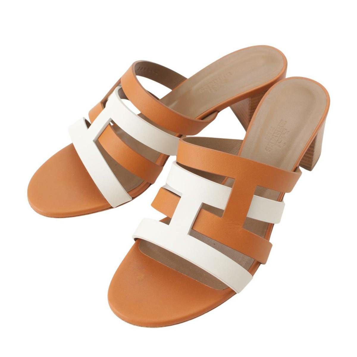 エルメス Hermes Amica アミカ レザー Hモチーフ サンダル ミュール ホワイト×ブラウン 37 1/2