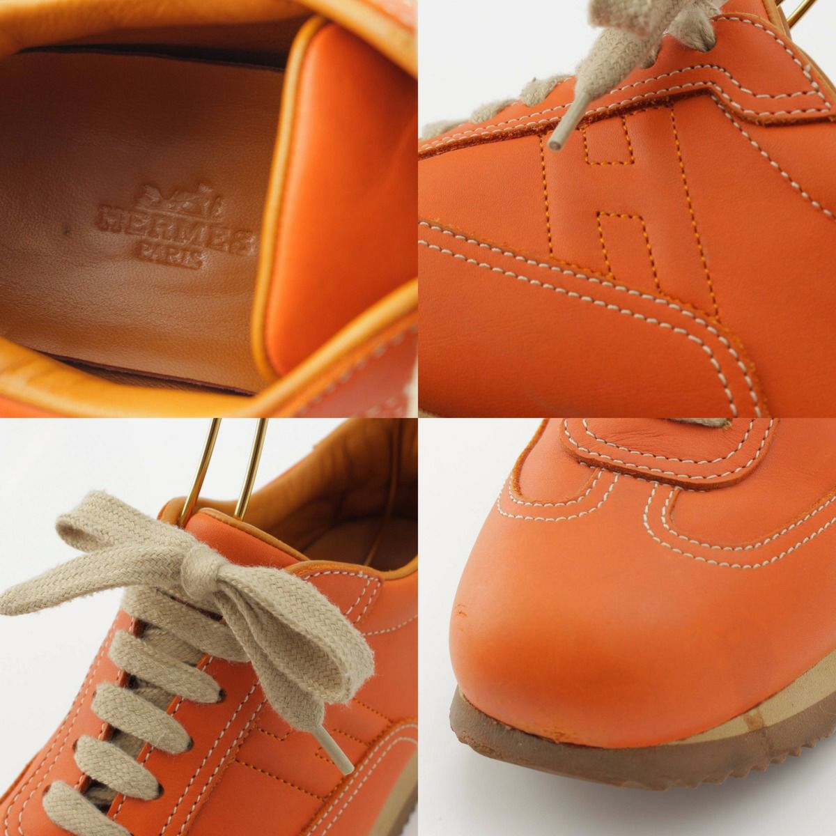 エルメス Hロゴ レザー クイック ローカット スニーカー オレンジ 35