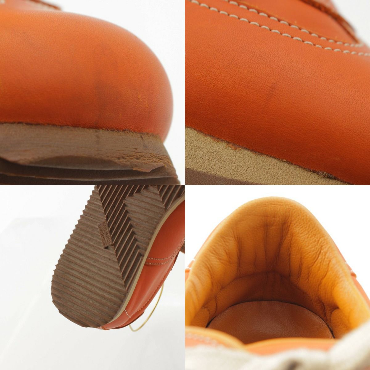 つま先、アッパー、かかと周りを中心に傷、汚れ、シワあり