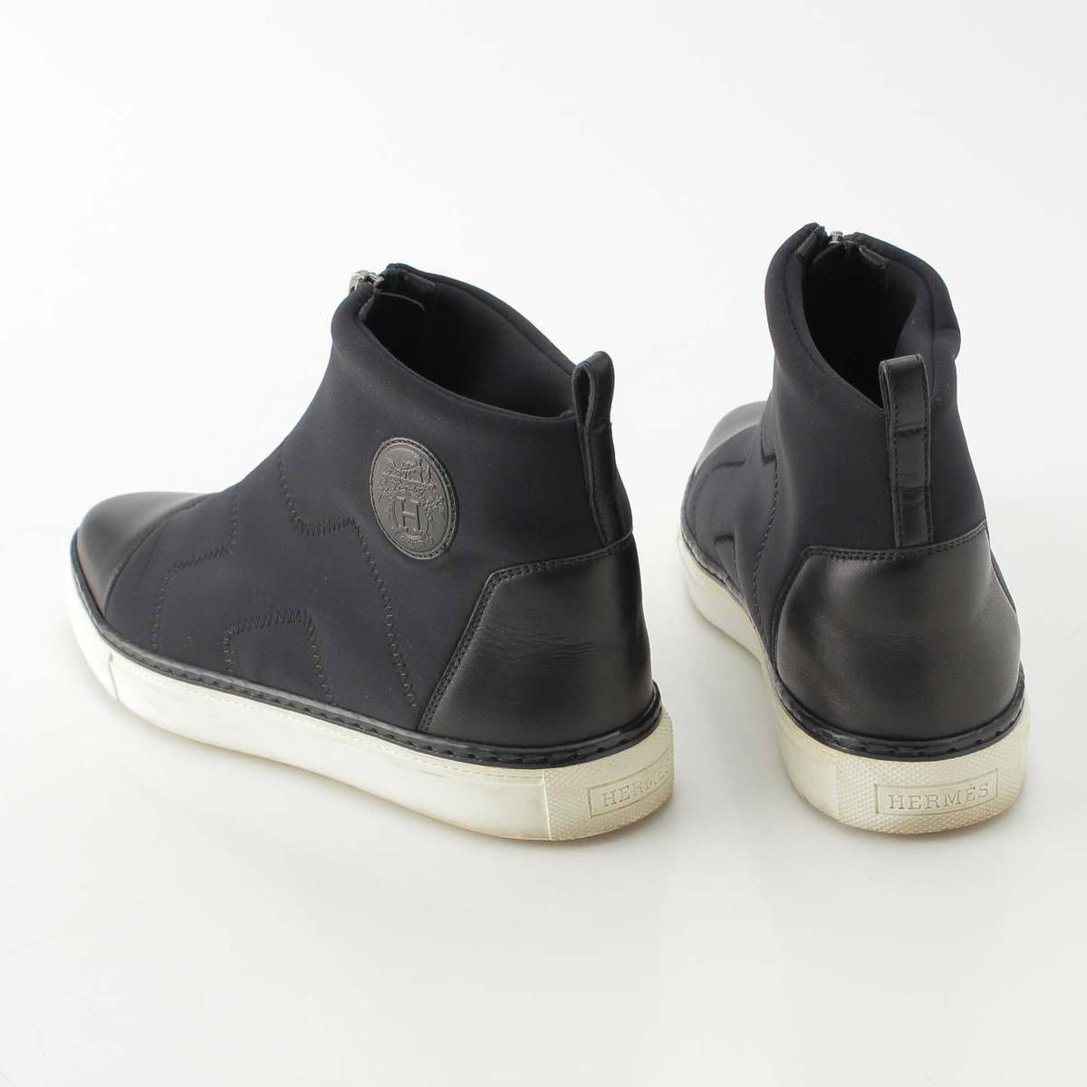 エルメス Hロゴ フロントジップ ナイロン×レザー ハイカット スニーカー ブラック 37