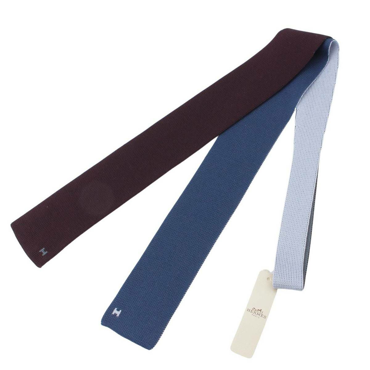 エルメス メンズ シルク キャトルタン スリム ニットタイ 4カラー ブルー×グレー×ブラウン