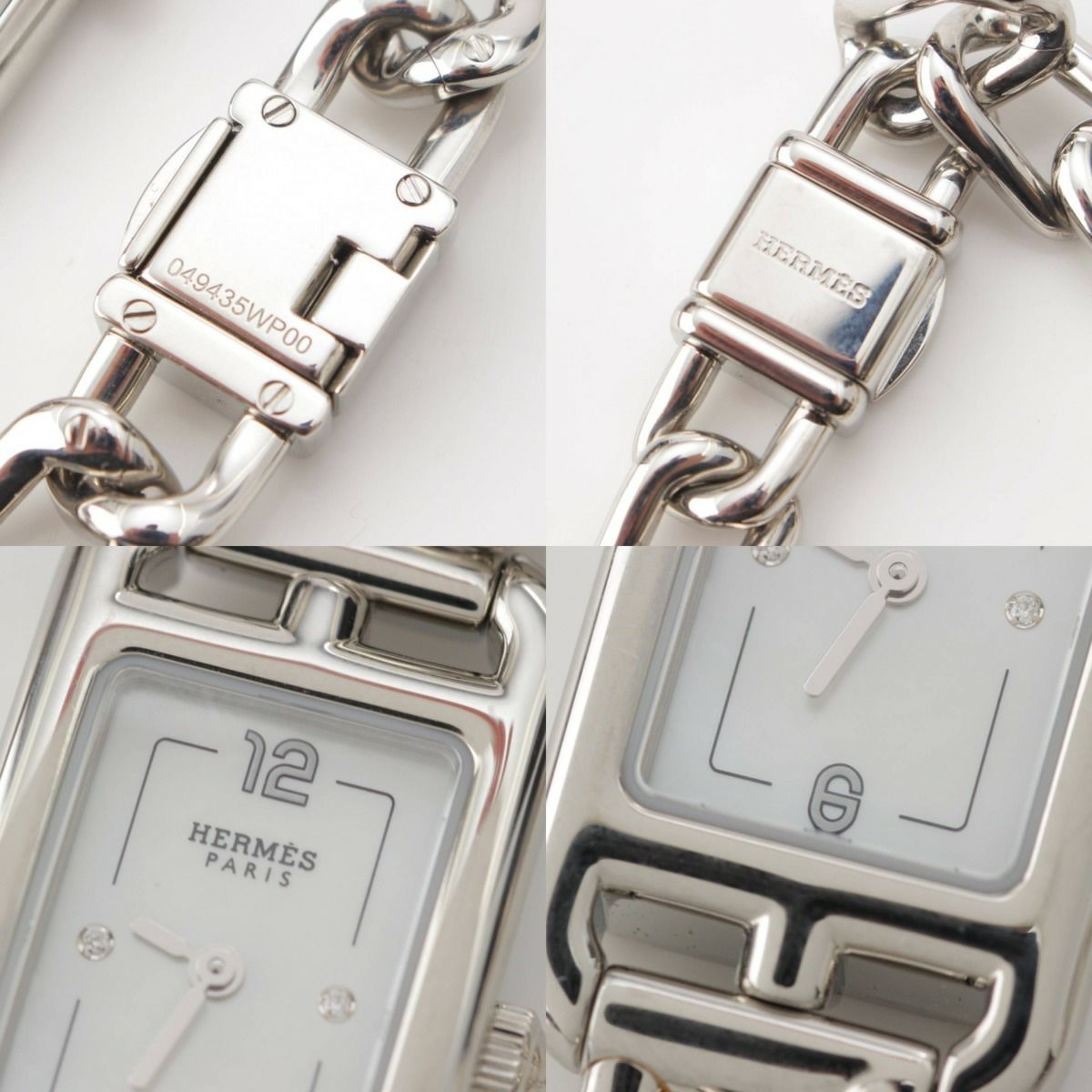 エルメス ナンタケット 2Pダイヤ シェル文字盤 QZ SS 腕時計 NA2.110C シルバー