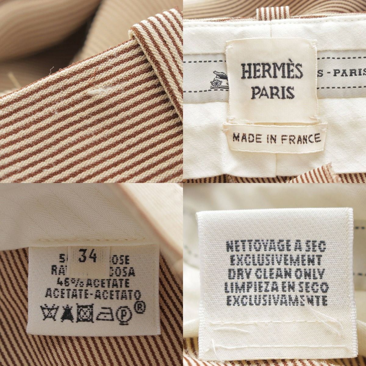 エルメス ストライプ スラックス リラックスパンツ ベージュ×ブラウン 34
