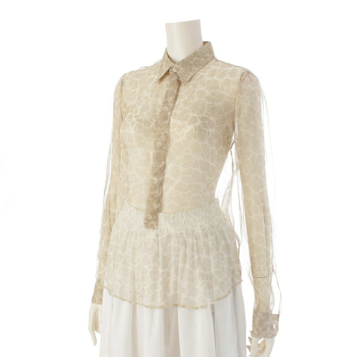 ヘルムートラング シルク 本人期 00s初期 00-05s アニマルプリント シアー プルオーバー ブラウス 長袖シャツ ベージュ 40