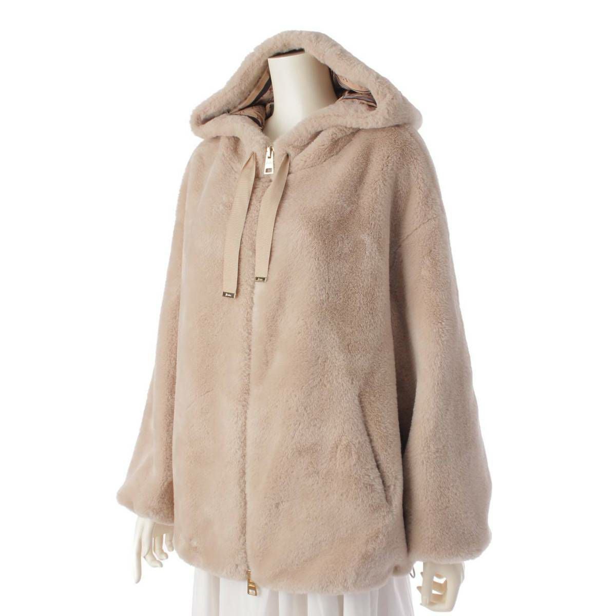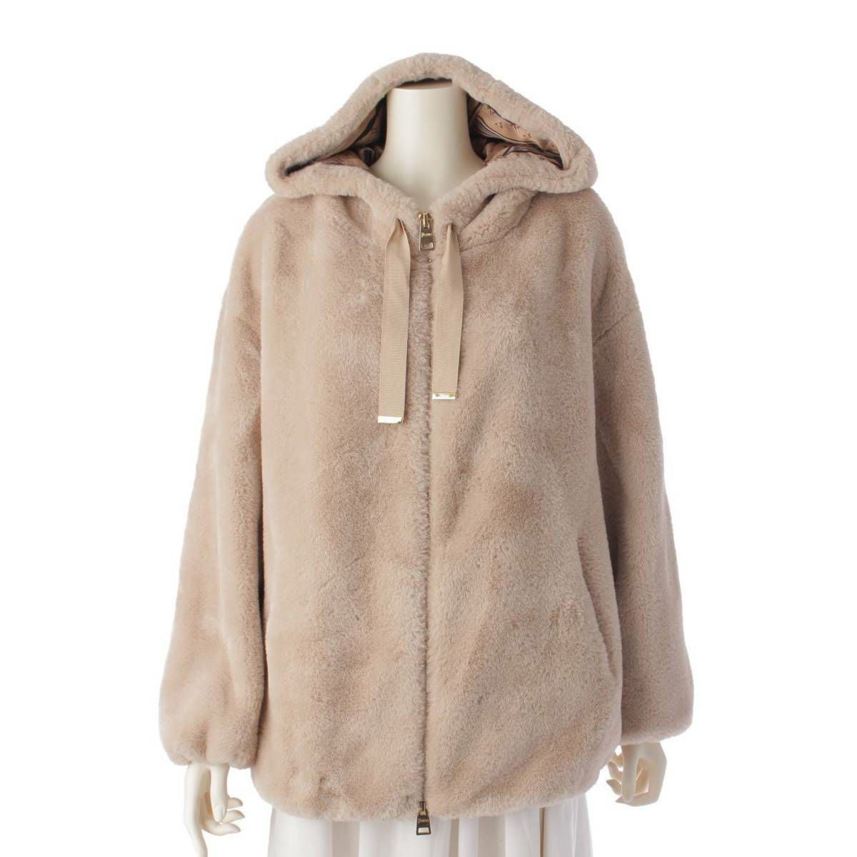 ヘルノ Herno 裏地総柄 フーテッド エコファー フード ブルゾンジャケット GI0138D ベージュ 40