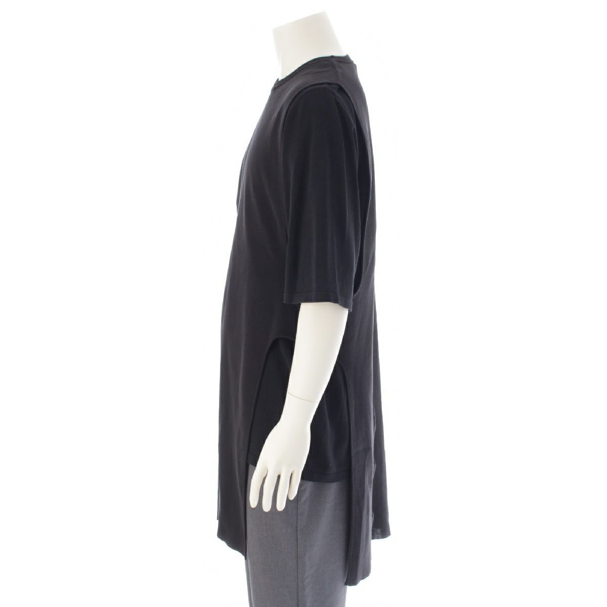 リックオウエンス 20SS コットン クルーネック 変形 ロング丈 半袖Tシャツ トップス カットソー RR20S7686-C ブラック ONE SIZE
