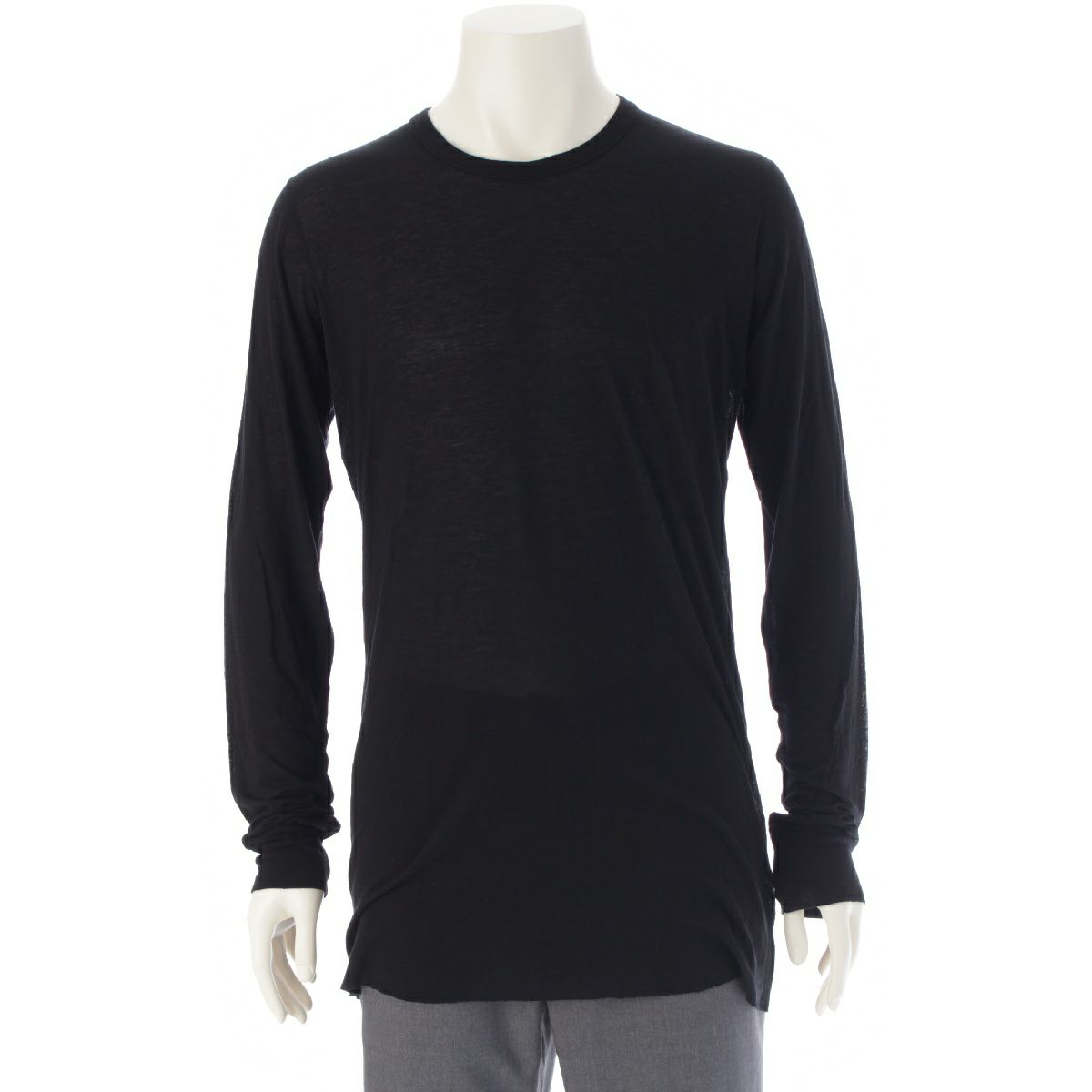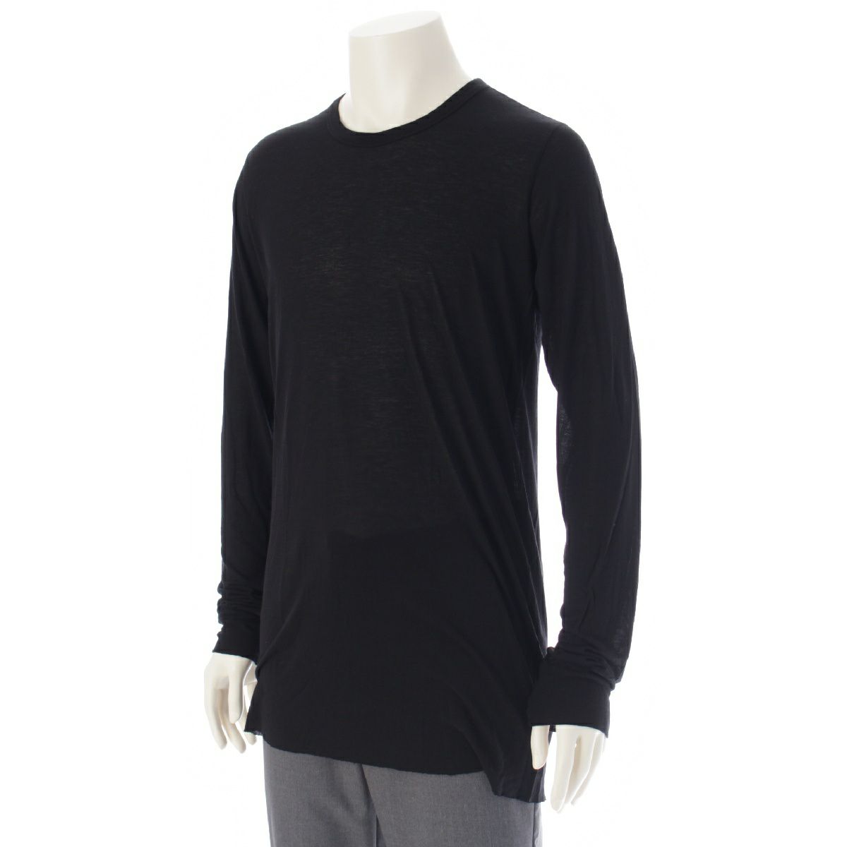 リックオウエンス 22AW BASIC LS ビスコース シルク 長袖Tシャツ トップス カットソー RU02A5252 ブラック XL
