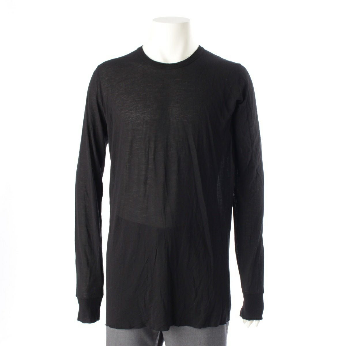 リックオウエンス 21AW BASIC LS TEE シルク ベーシックロングスリーブ クルーネック 長袖Tシャツ シースルーカットソー トップス RU02A5252 ブラック XL