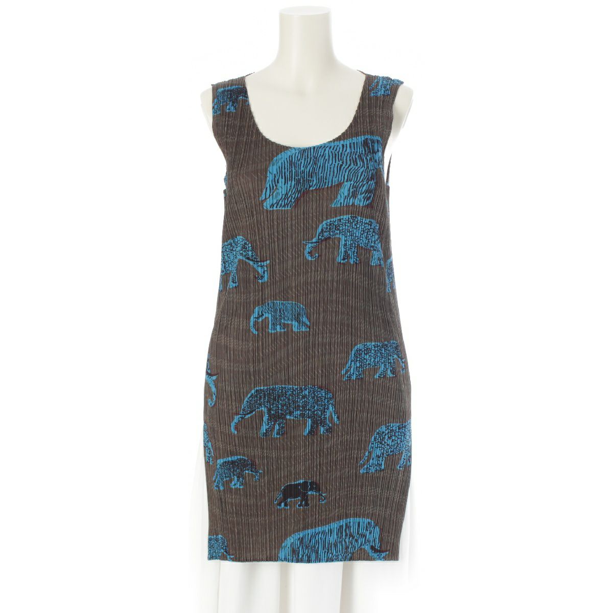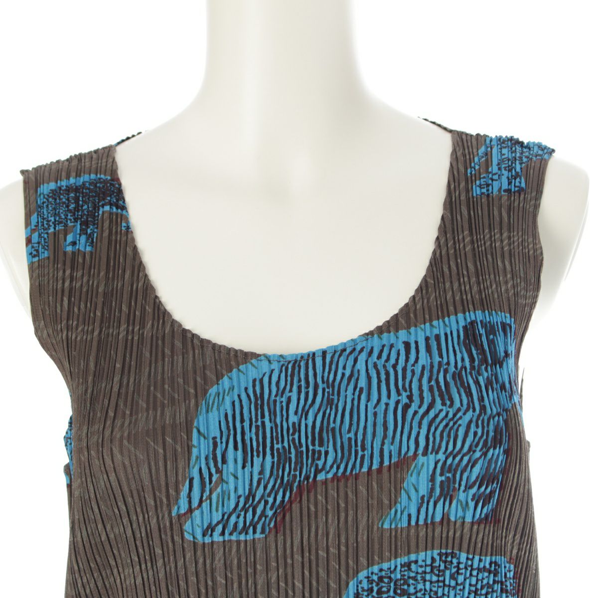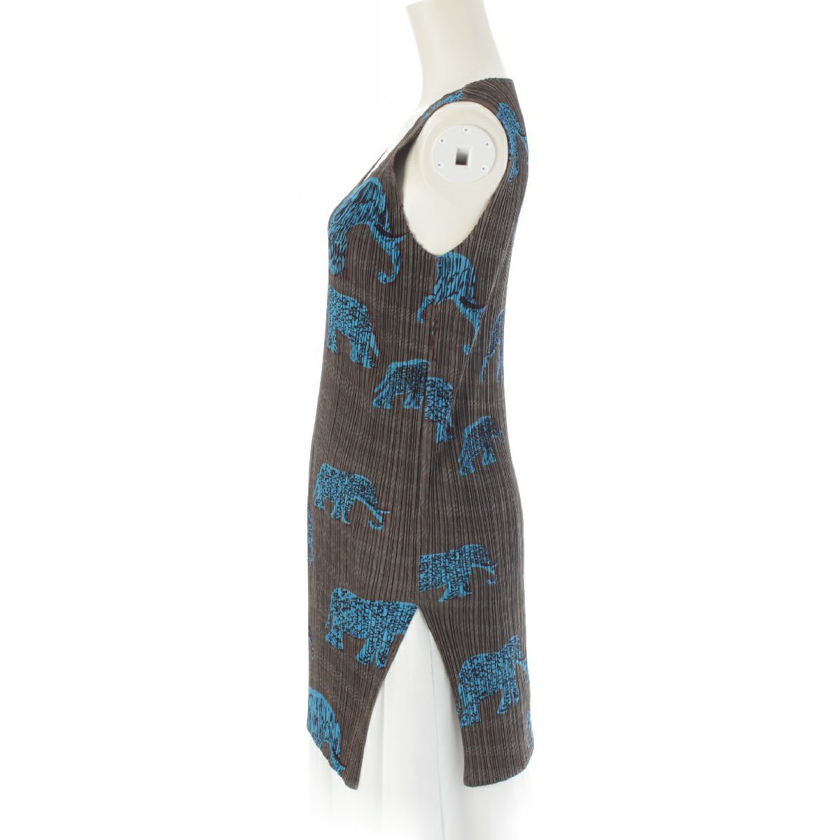 イッセイミヤケ アニマル柄 ノースリーブ ミニ ワンピース トップス PP94-JK552 ブラウン 3