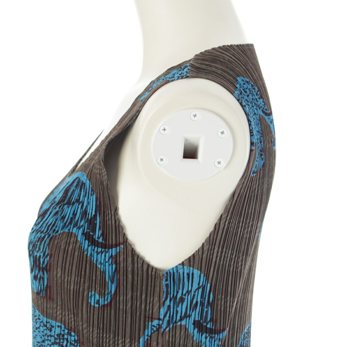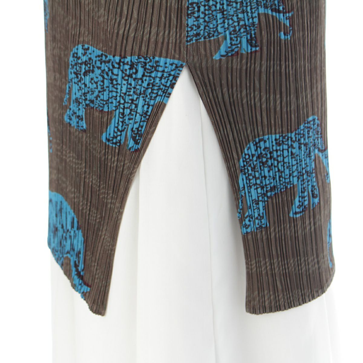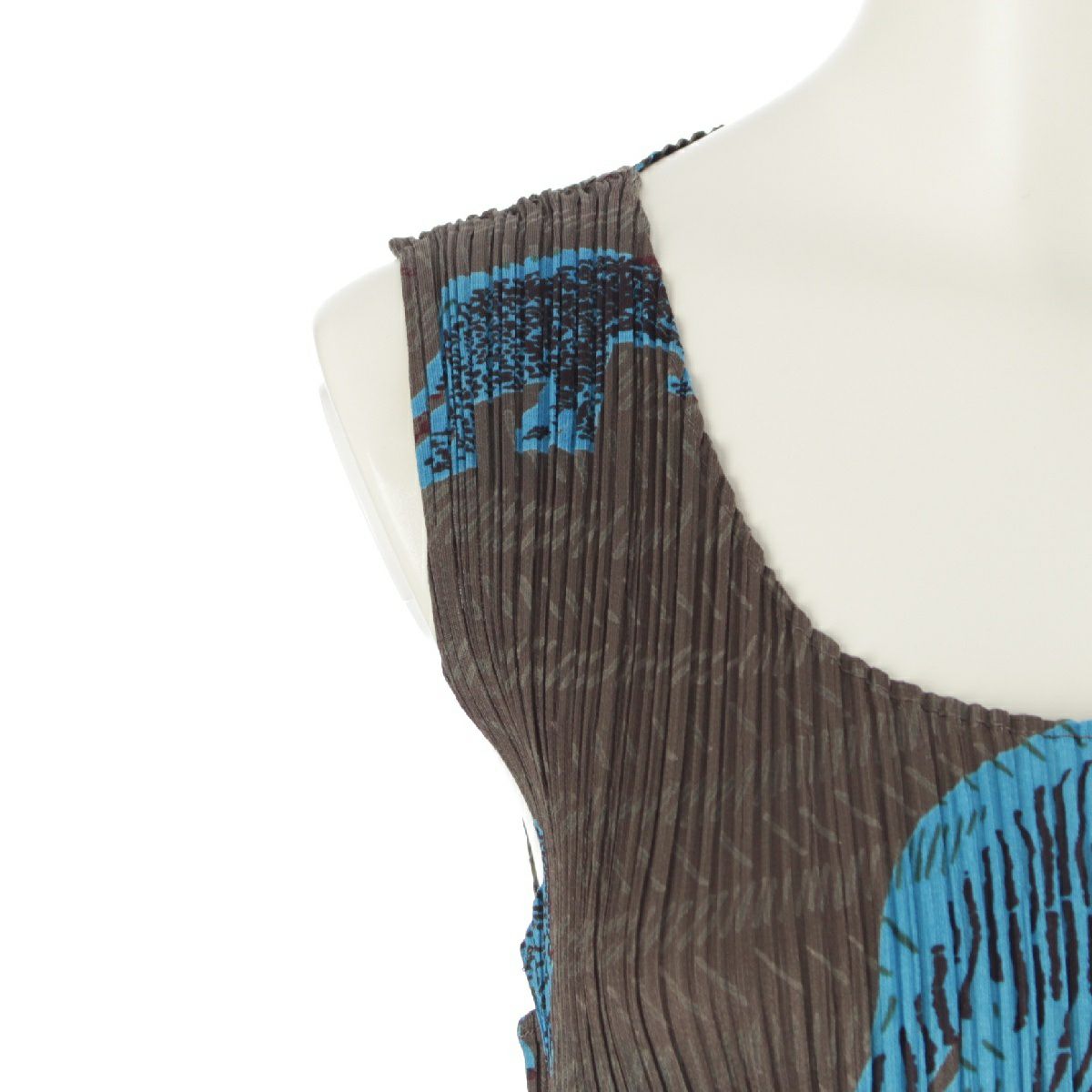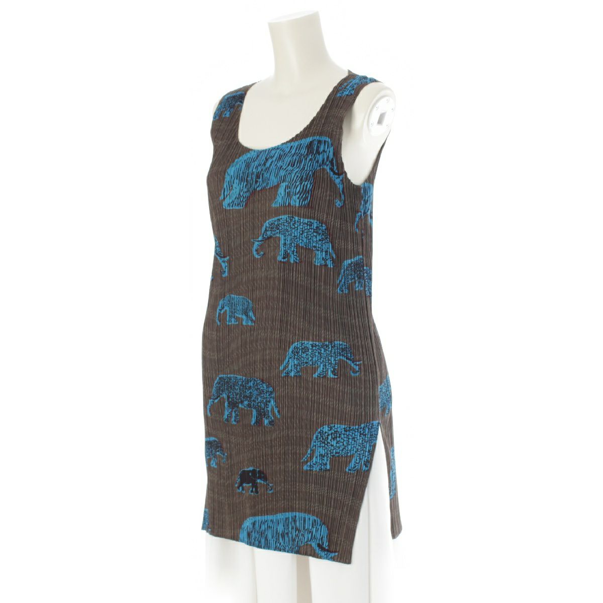 イッセイミヤケ アニマル柄 ノースリーブ ミニ ワンピース トップス PP94-JK552 ブラウン 3