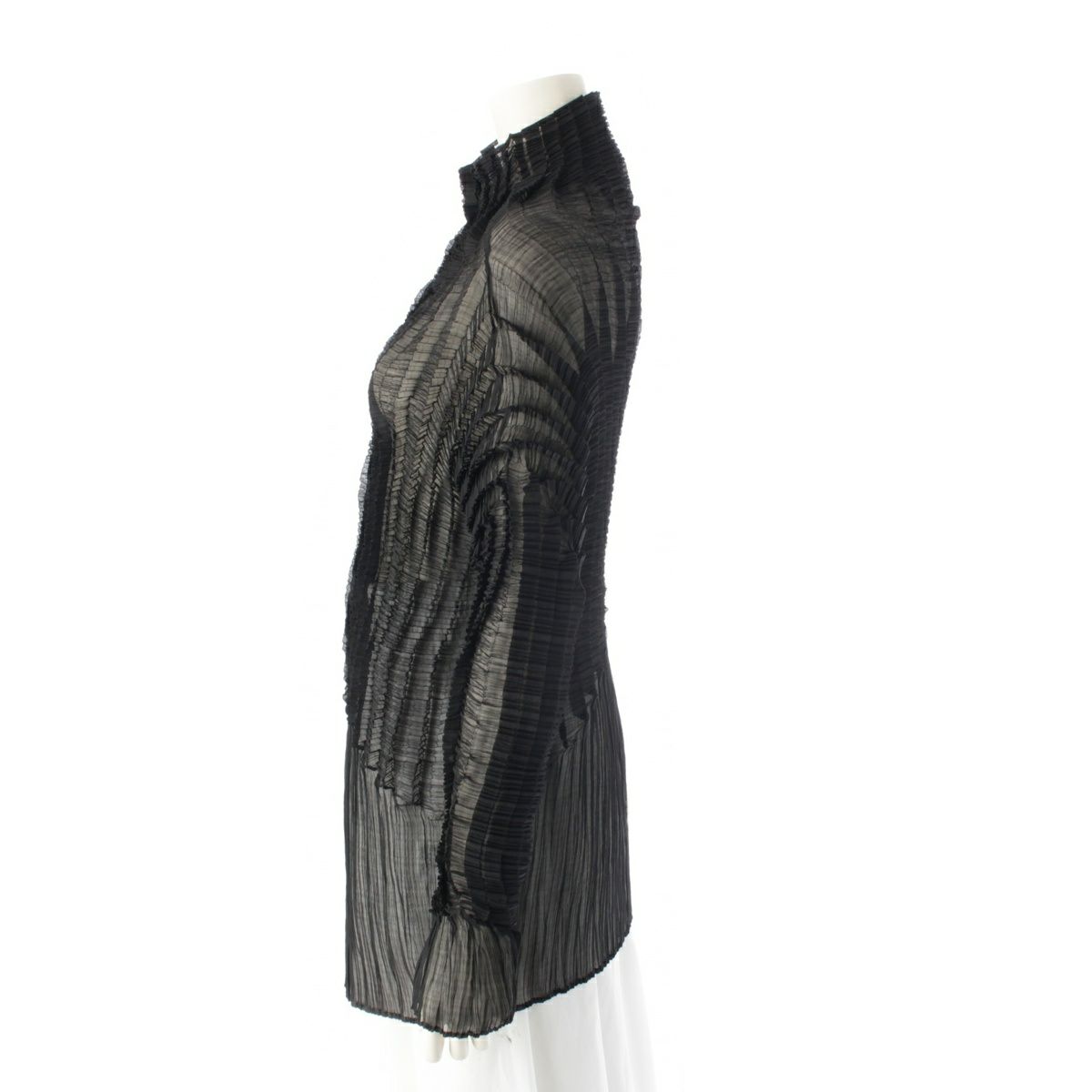 イッセイミヤケ プリーツ バイアス 切替 シースルー カーディガン トップス アウター IM03FJ802 ブラック 2