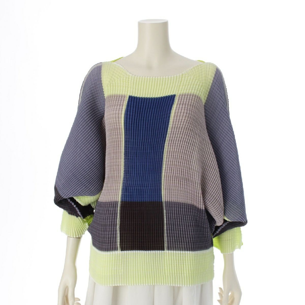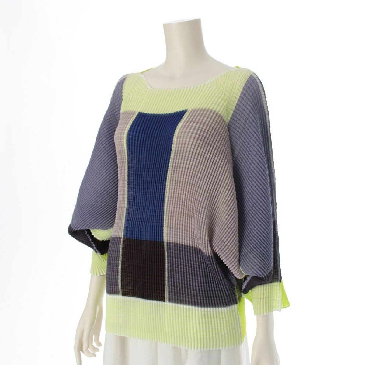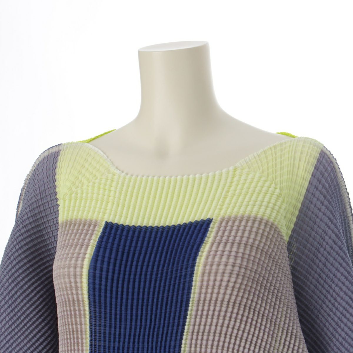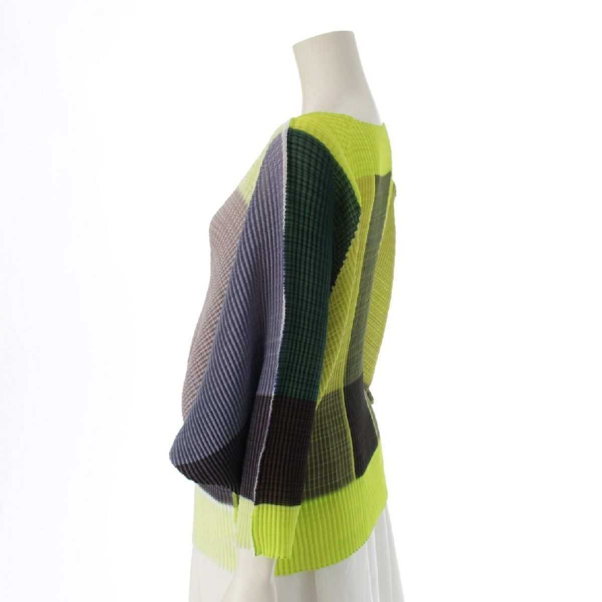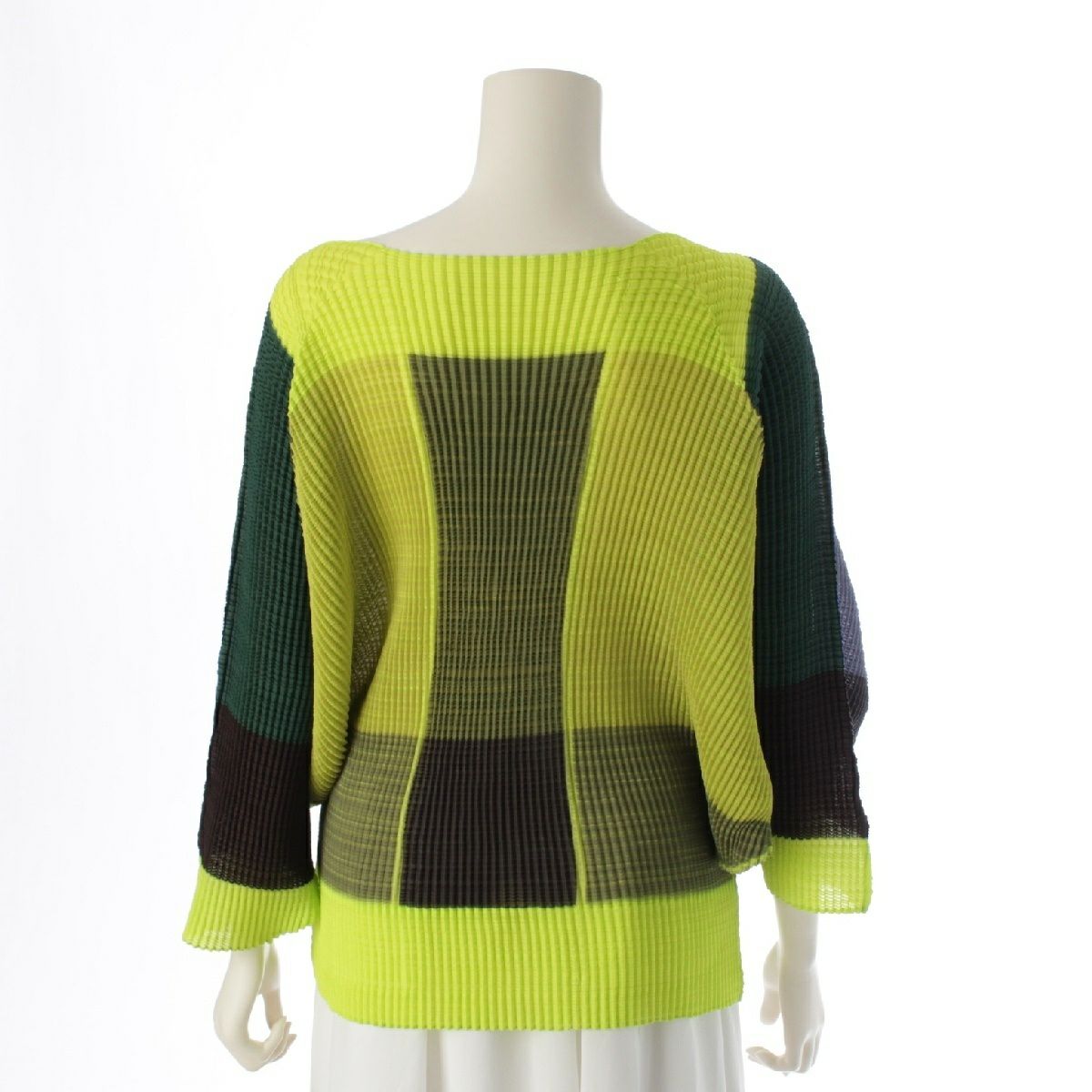 イッセイミヤケ 変形スリーブ プリーツ トップス IM73FJ156 ネオンイエロー マルチカラー 2