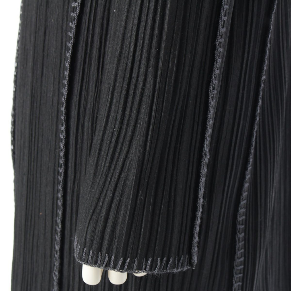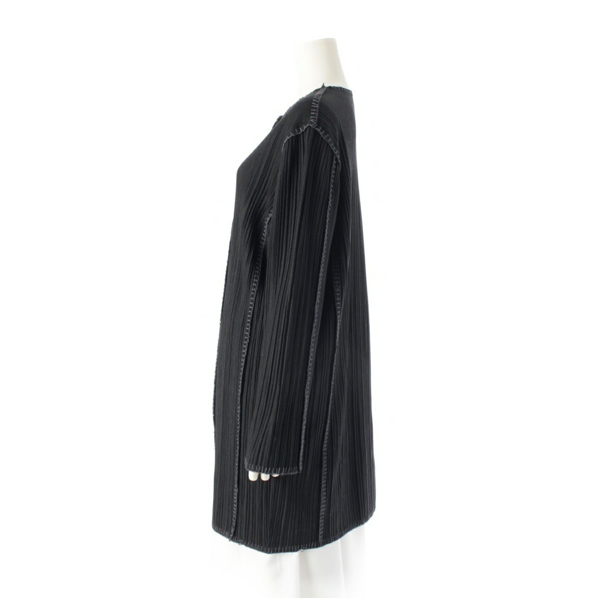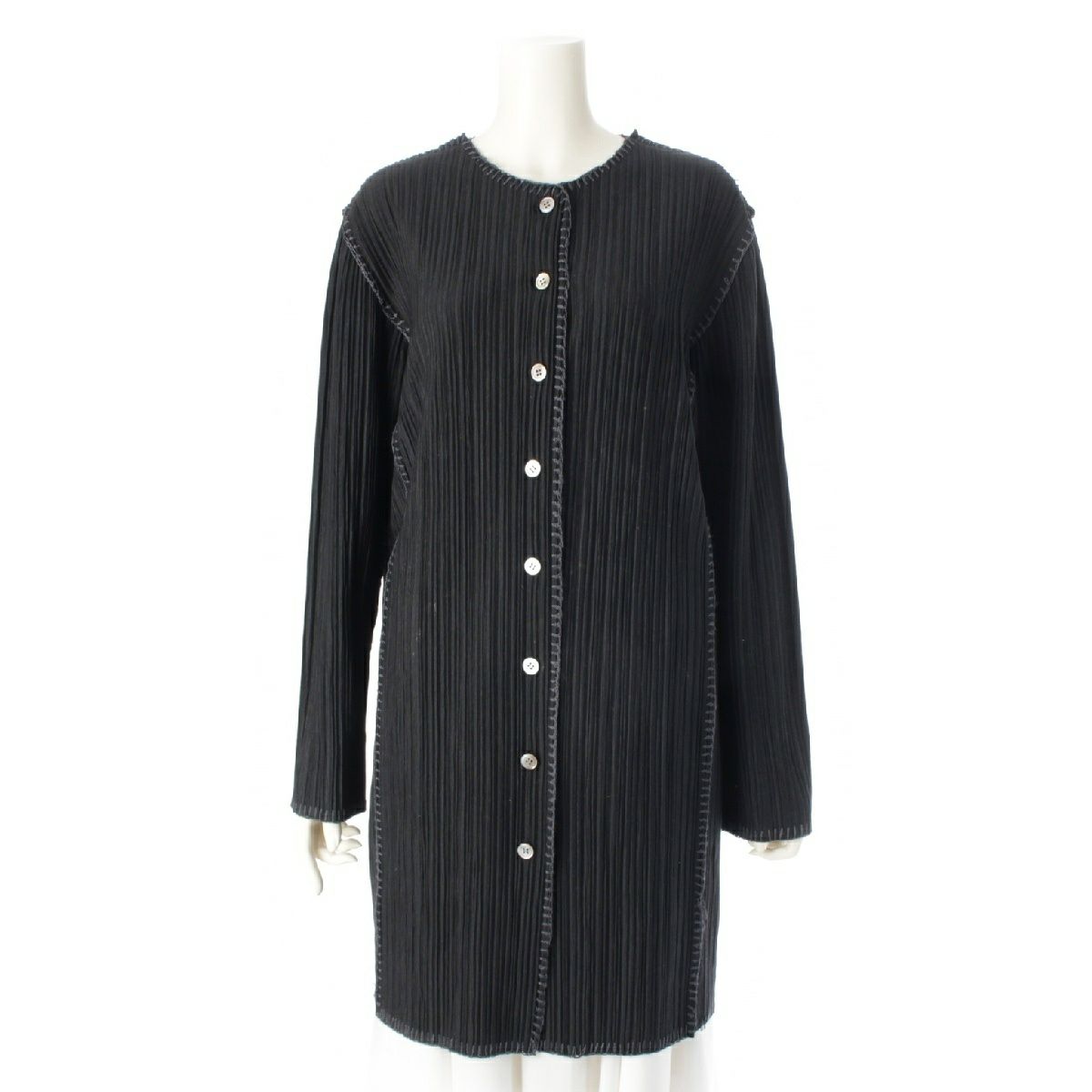 イッセイミヤケ ポリエステル プリーツデザイン ステッチ ロング ノーカラー テーラードジャケット トップス IM01-FG618 ブラック M