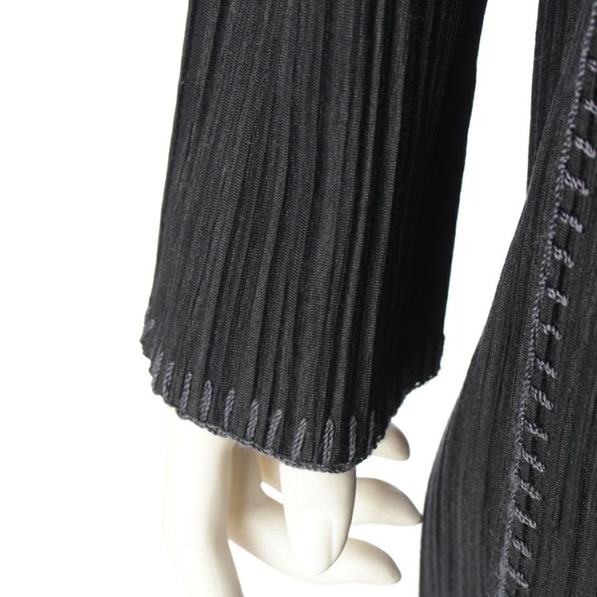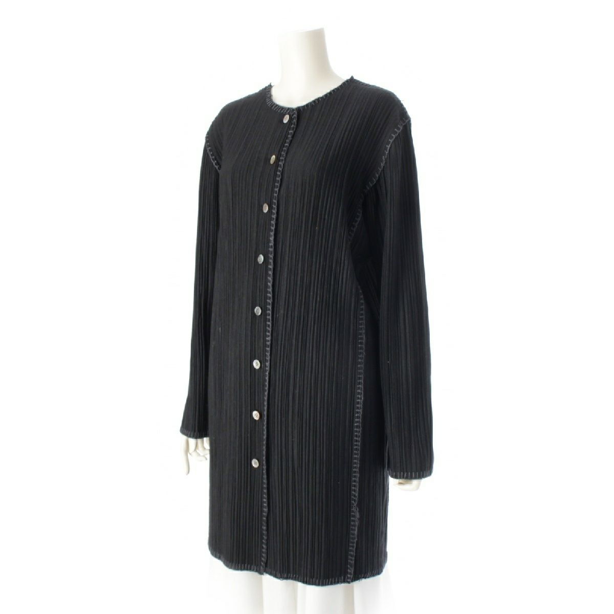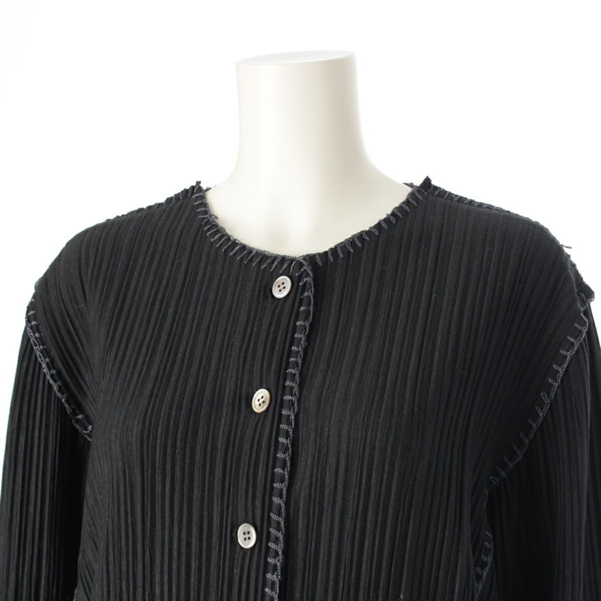 イッセイミヤケ ポリエステル プリーツデザイン ステッチ ロング ノーカラー テーラードジャケット トップス IM01-FG618 ブラック M