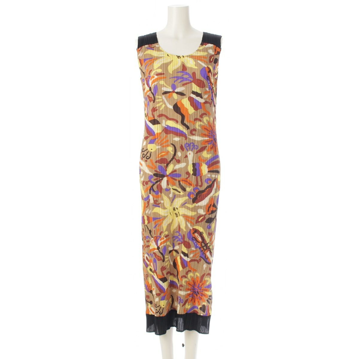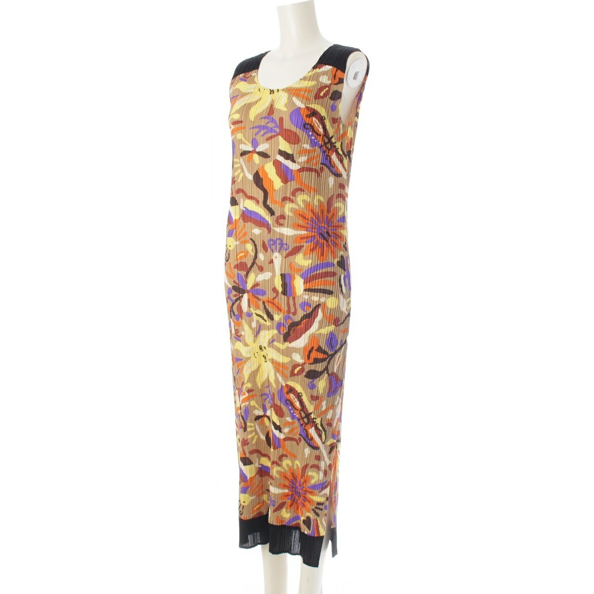 イッセイミヤケ 16年 太陽 孔雀 総柄 プリント ノースリーブ ワンピース PP63-JH585 マルチカラー 4