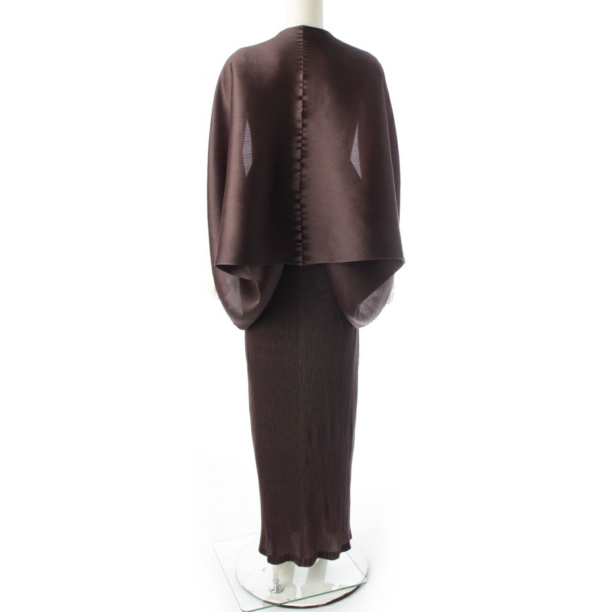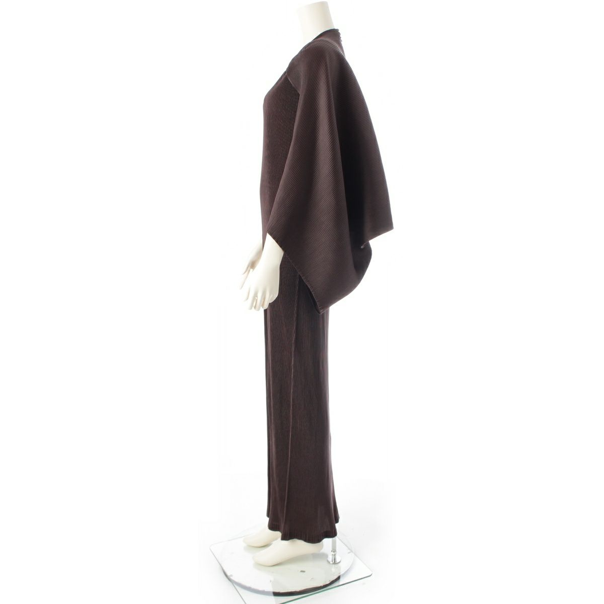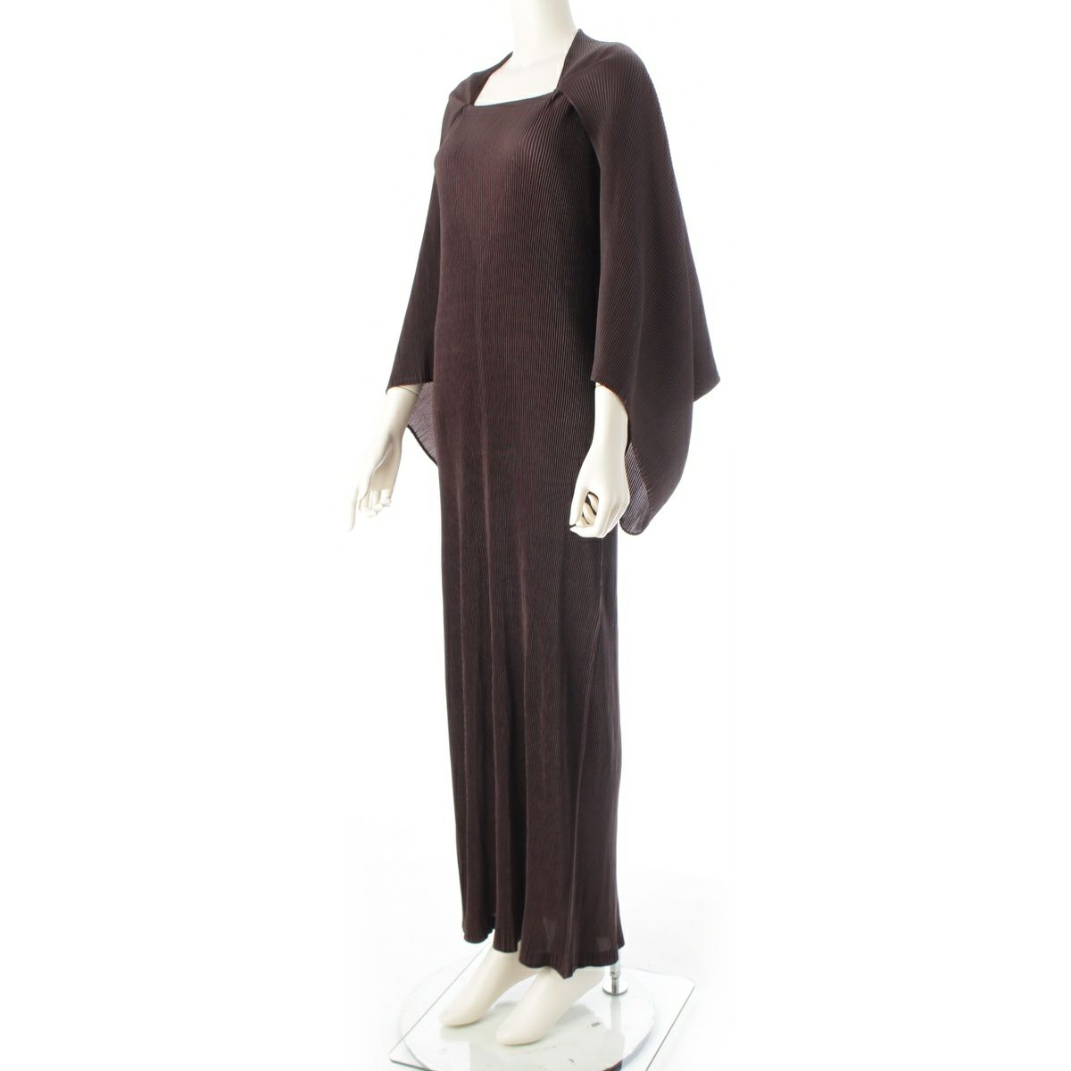 イッセイミヤケ 11年 プリーツ ケープドッキング ロング ワンピース IM12FH060 ブラウン 3