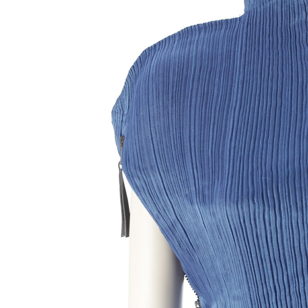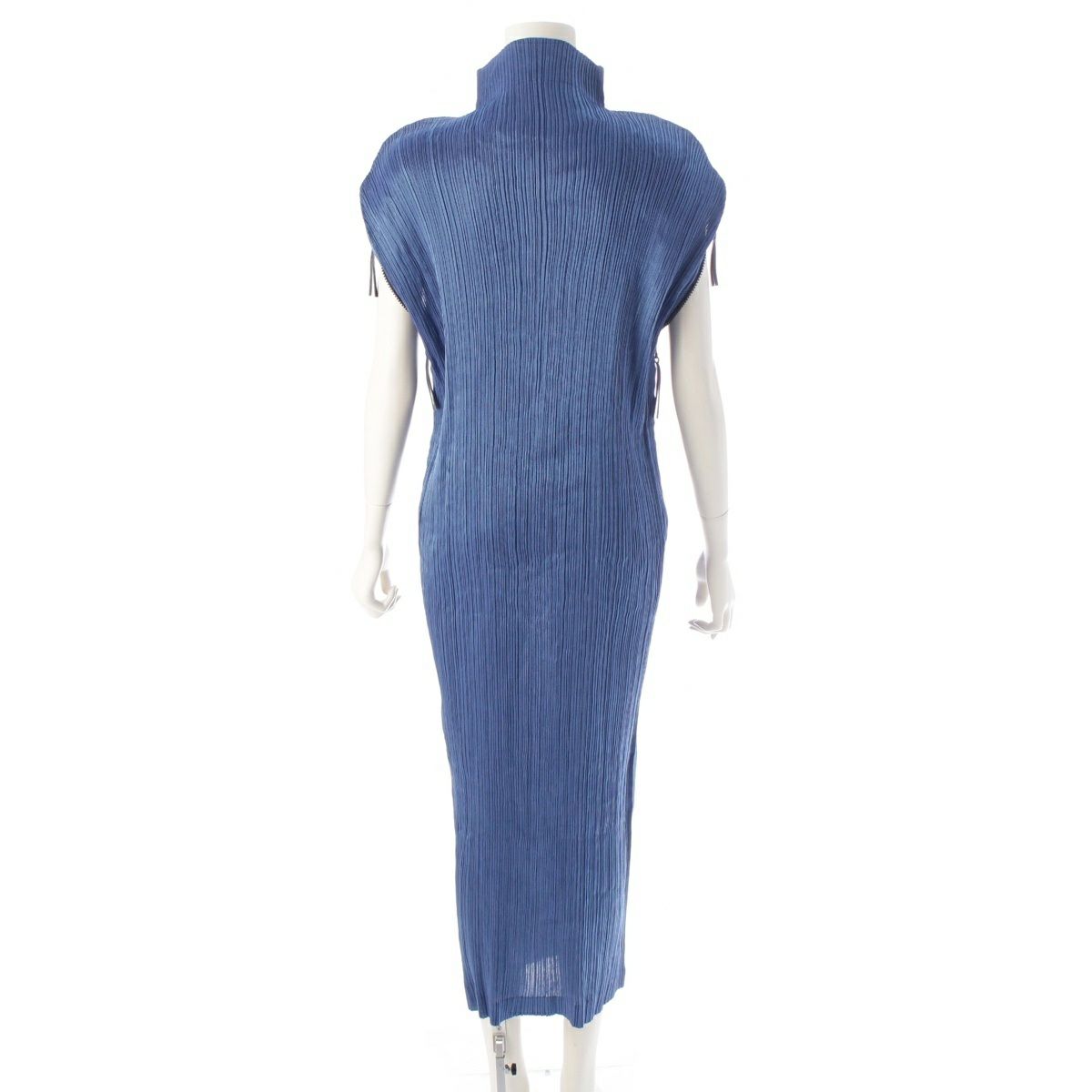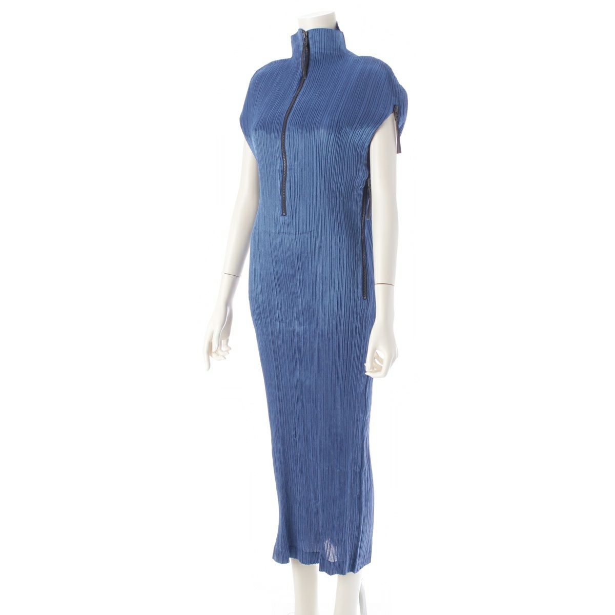 イッセイミヤケ レーヨン プリーツ ジップ ファスナー モチーフ ロング ワンピース IM71-FH910 メタリックブルー M