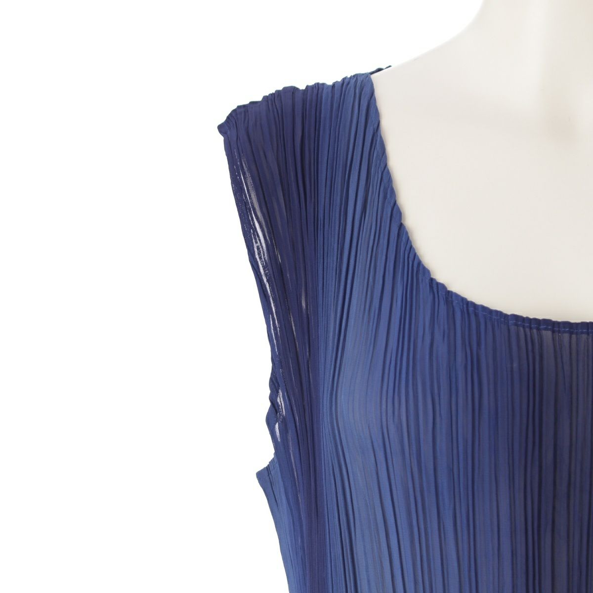 イッセイミヤケ Vネック ノースリーブ マルチストライプ マルチカラー ワンピース ドレス IM53-FH918 ブルー系 L