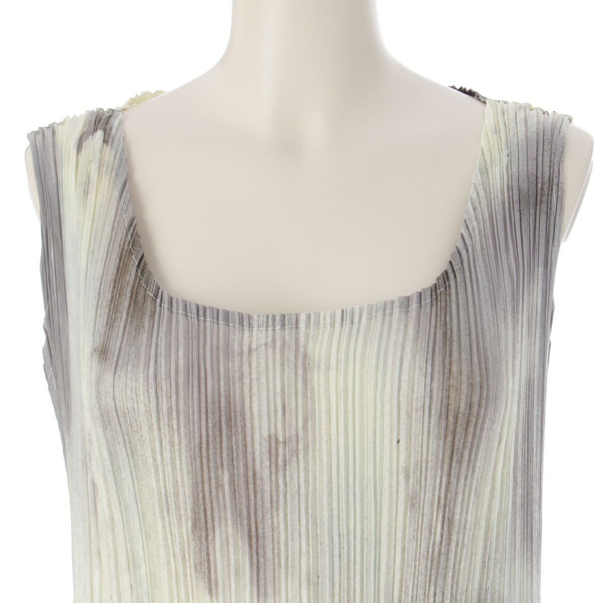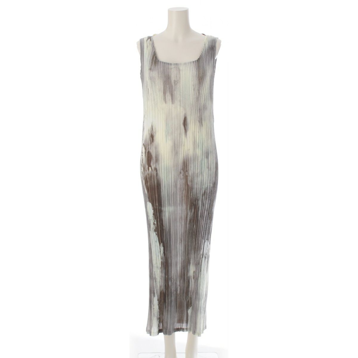 イッセイミヤケ アブストラクトパターン 抽象柄 プリーツデザイン ノースリーブ ワンピース ドレス IM92-FH939 マルチカラー M