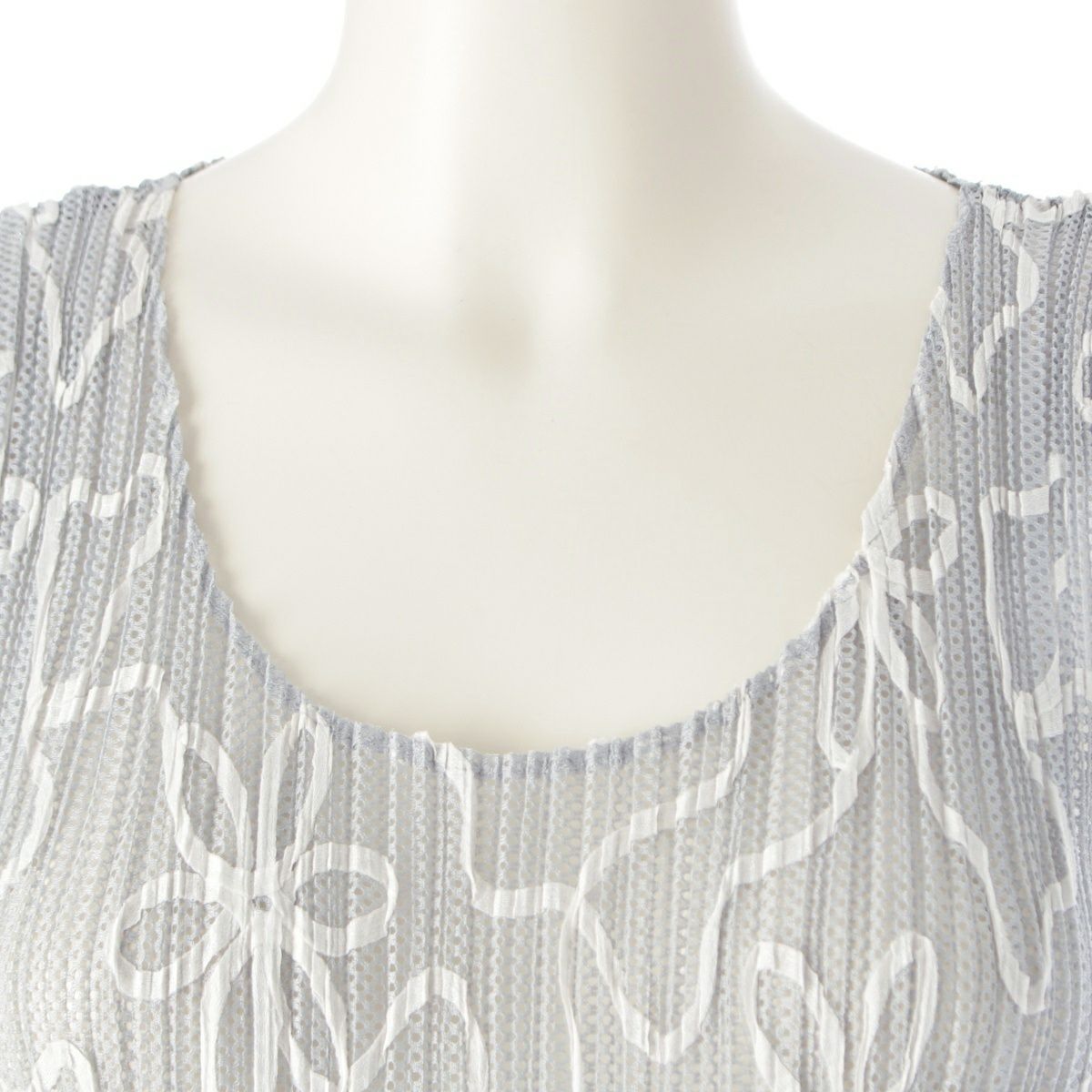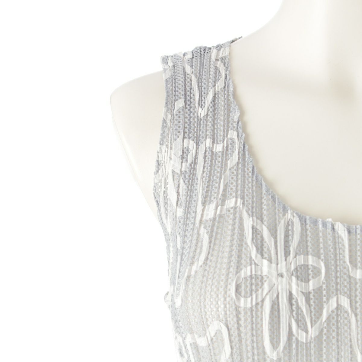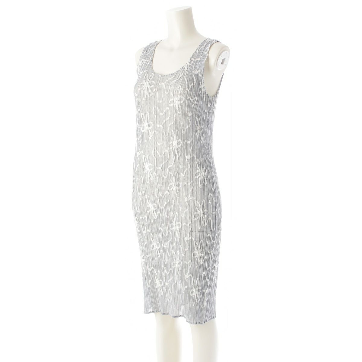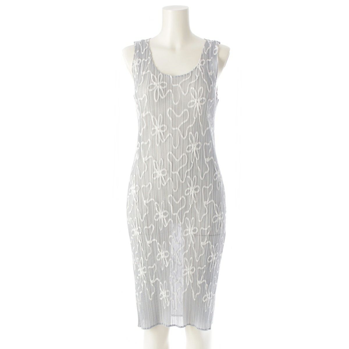 イッセイミヤケ メッシュ 花柄 刺繍 ノースリーブ ワンピース ドレス PP06-JH310 グレー 3