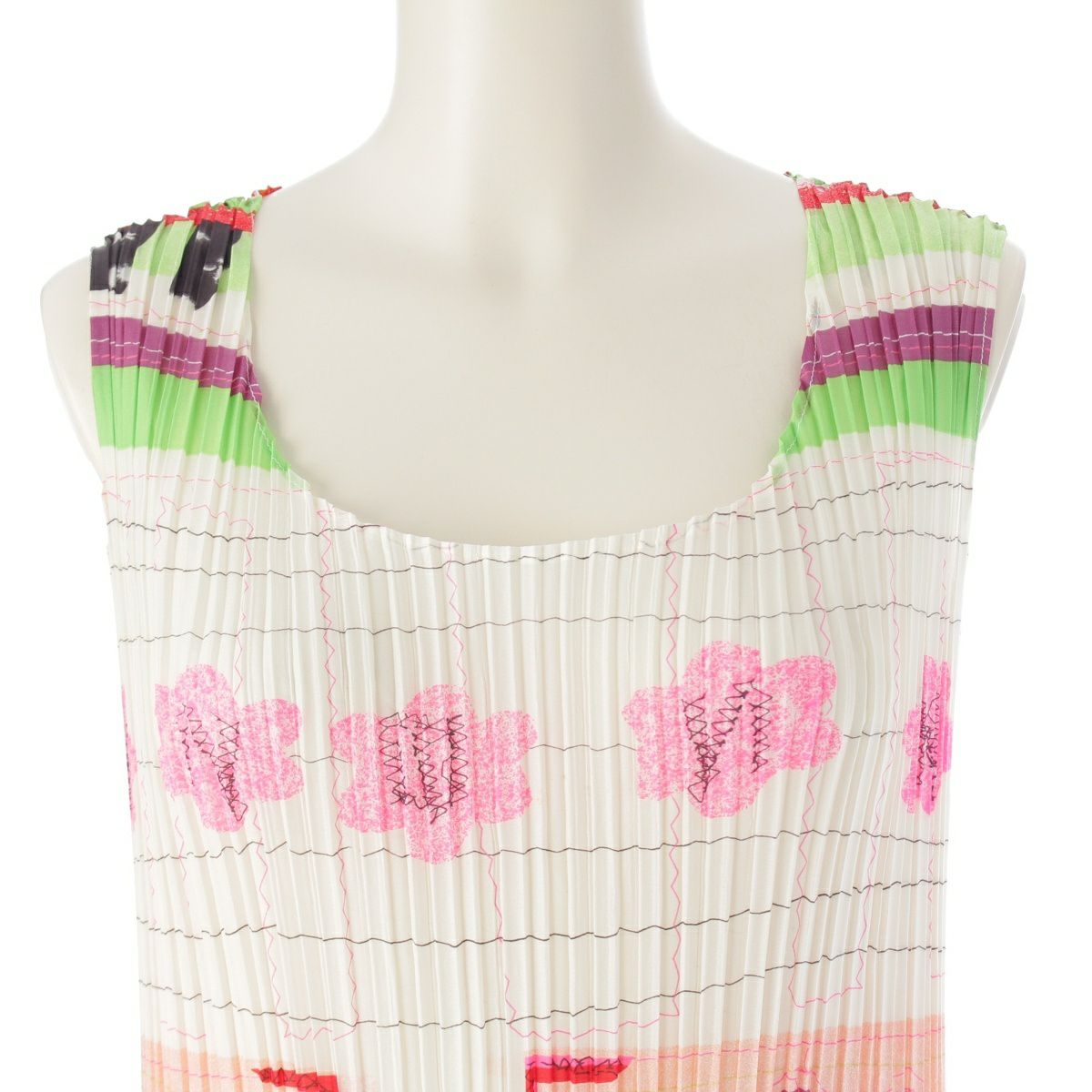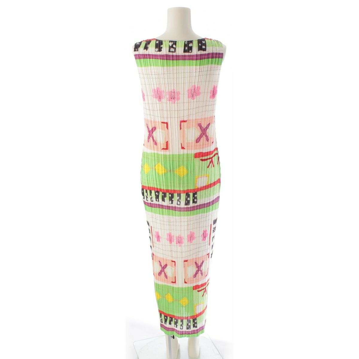 イッセイミヤケ 総柄 ノースリーブ ワンピース ドレス IM04FH926 ホワイト 2