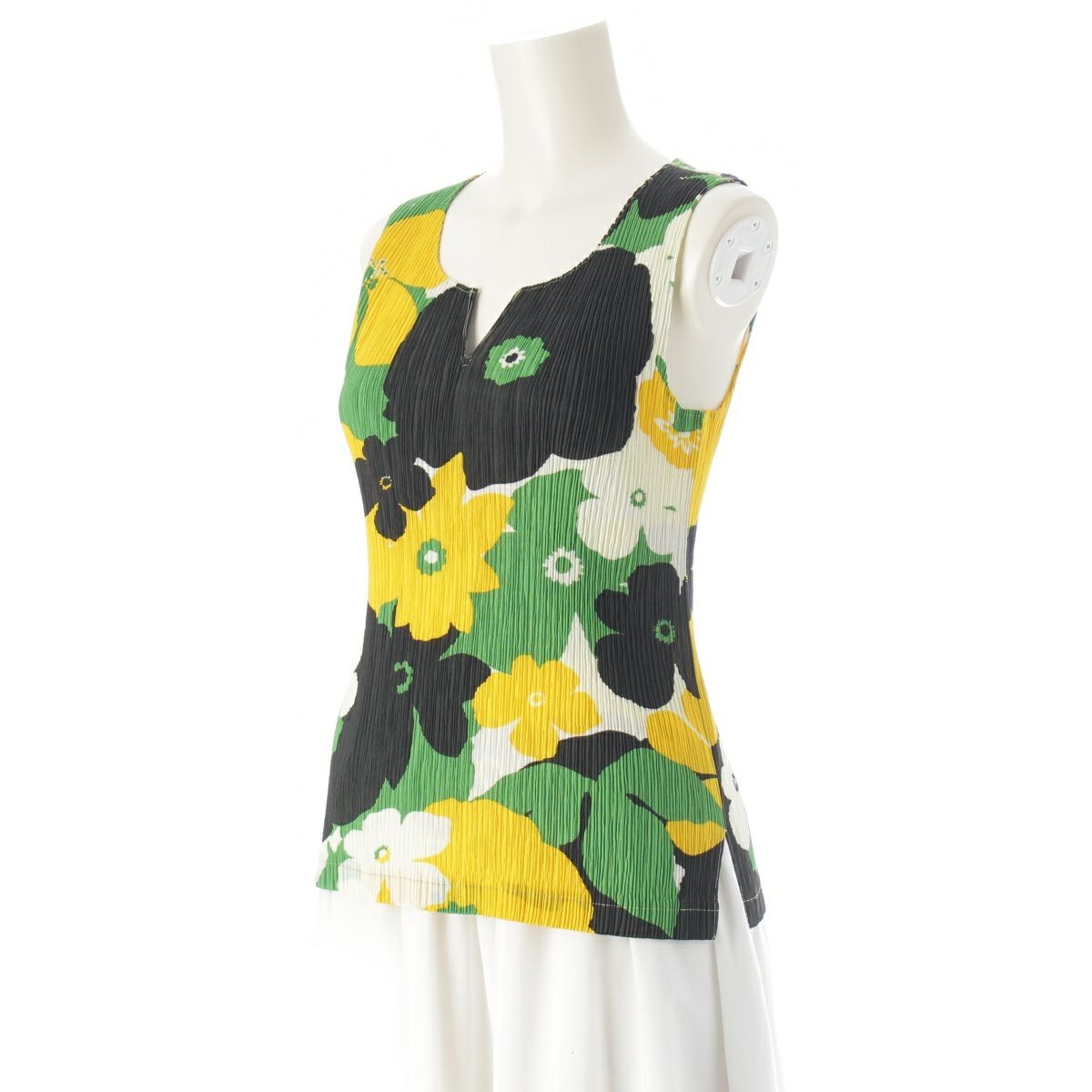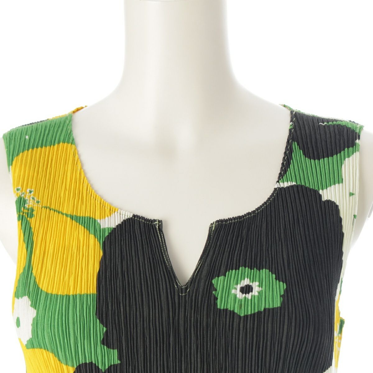 イッセイミヤケ 花柄 ノースリーブ プリーツ カットソー トップス IM42FJ232 ブラック イエロー グリーン 2